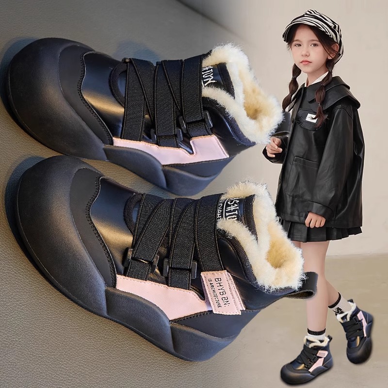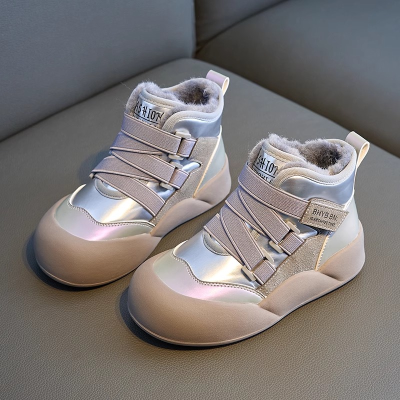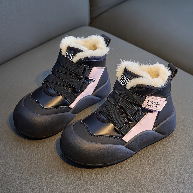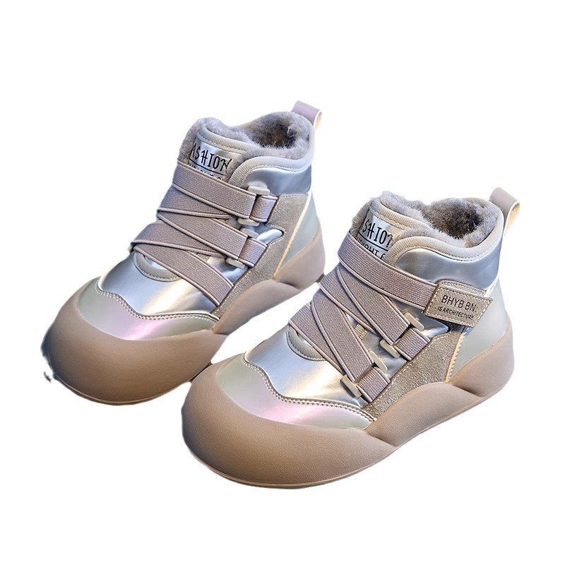 キッズスノーブーツ女性2024冬の新作ファッションギャザー厚手ショートブーツ100枚重ね厚底マドレーヌハイカット綿靴 カジュアル靴