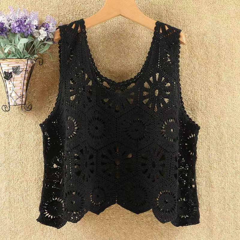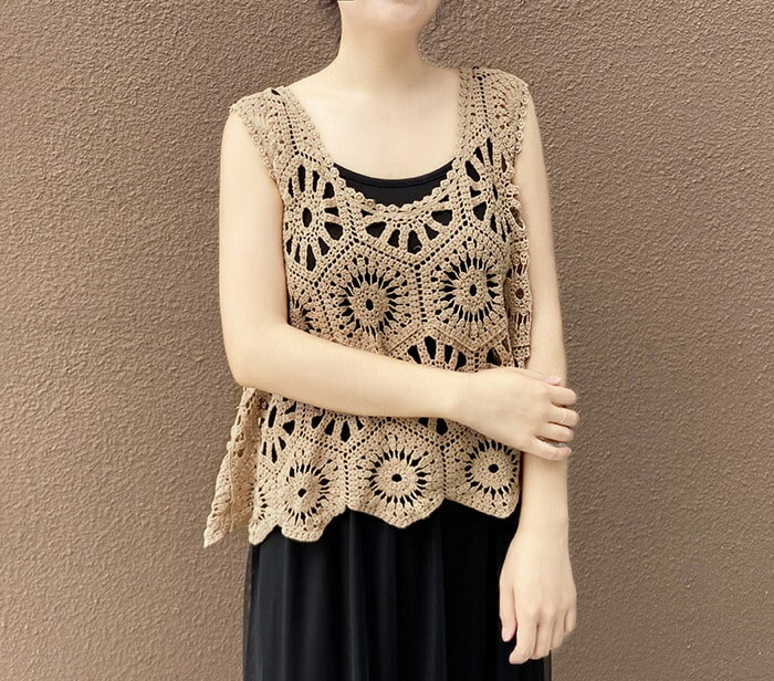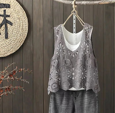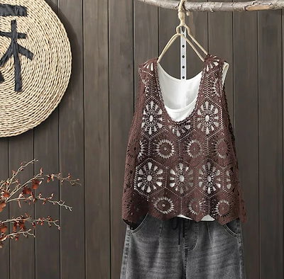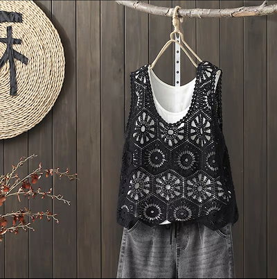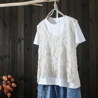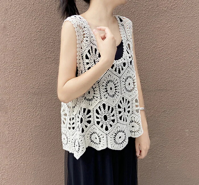 ベスト レディース 春 夏 クロシェ編み トップス 透かし編み プルオーバー Vネック かぎ編み カジュアル 無地 レイヤード ニットベスト トップス きれいめ カジュアル フェミニン
