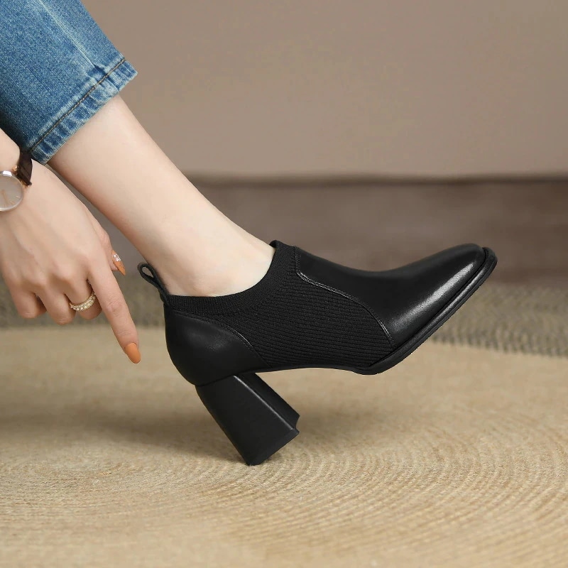 秋冬ファッション レディースショートブーツ ーシューズ ニットソックス ストレッチ ヒール 太ヒール 美脚 ミドルカットョート 調靴 歩きやすい ミドルヒール ブーツ 靴
