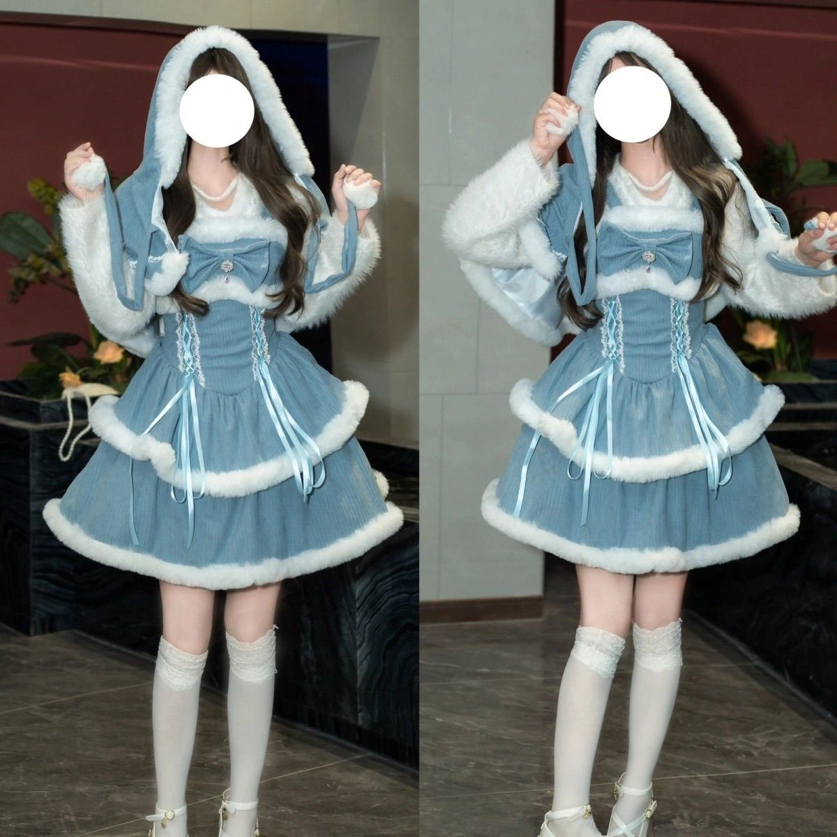 颜色分类: 赤いドレス 青いドレス 赤いドレス+リボン+ケープ 青いドレス+リボン+ケープ