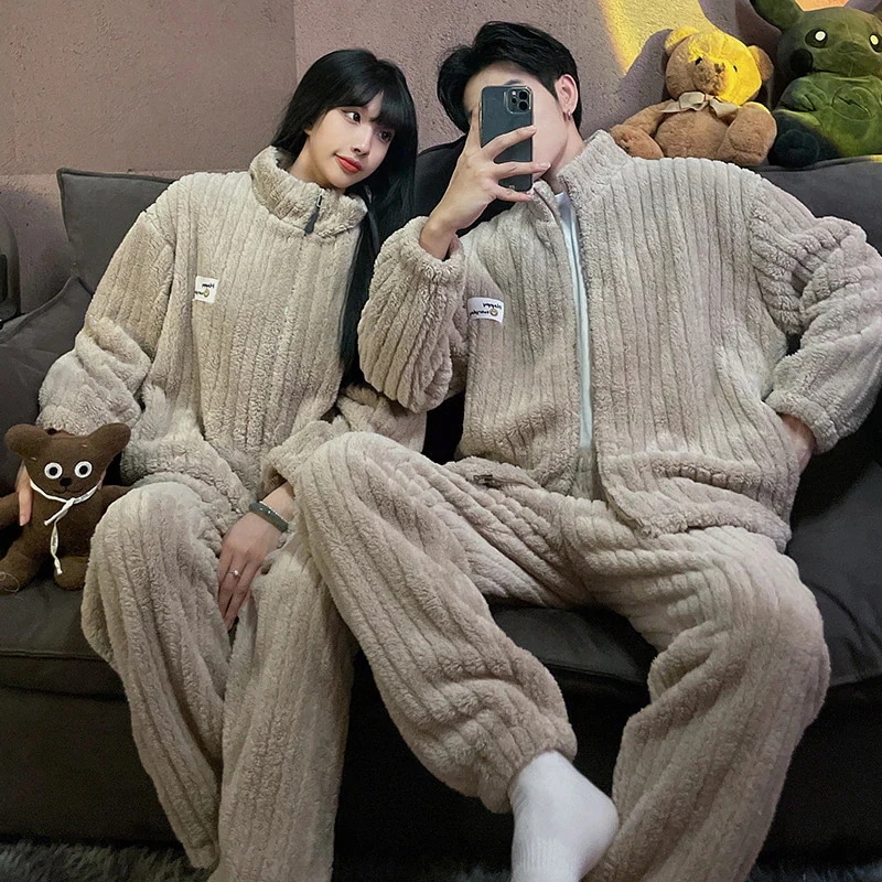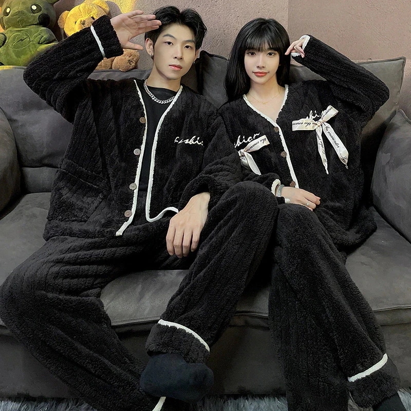 秋冬新作 レディース ルームウェア 上下セット男女同じカップル学生 部屋着セット秋冬 長袖 フランネル パジャマ メンズ ルームウェア ペアパジャマ 前開き もこもこ 部屋着 結婚祝い プレゼント