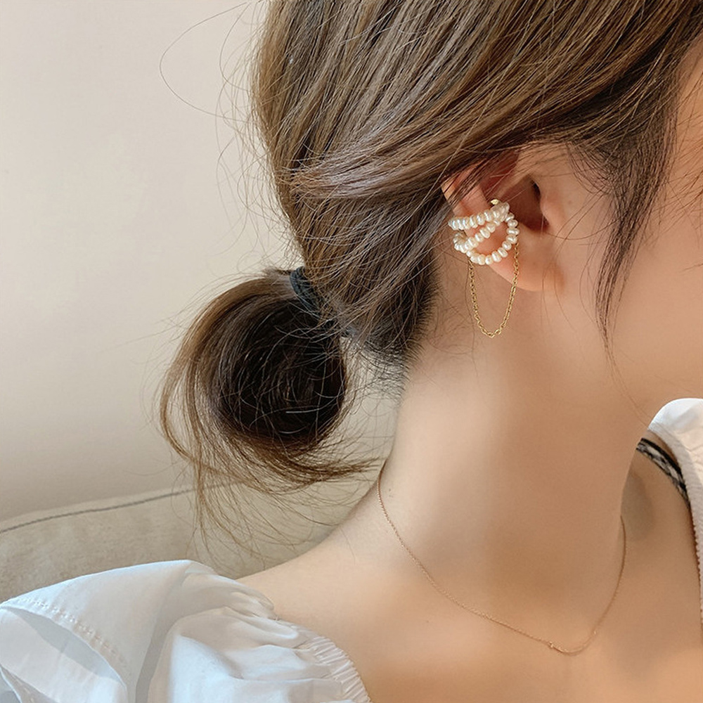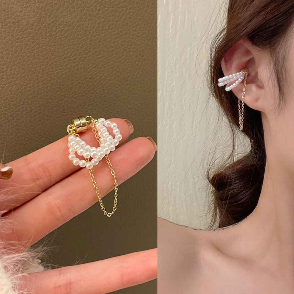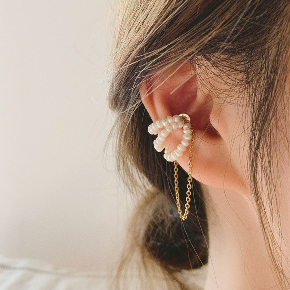 イヤーカフ チェーン レディース 片耳用 イヤリング マグネット キャッチ フェイクパール アクセサリー 韓国ファッション きれいめ