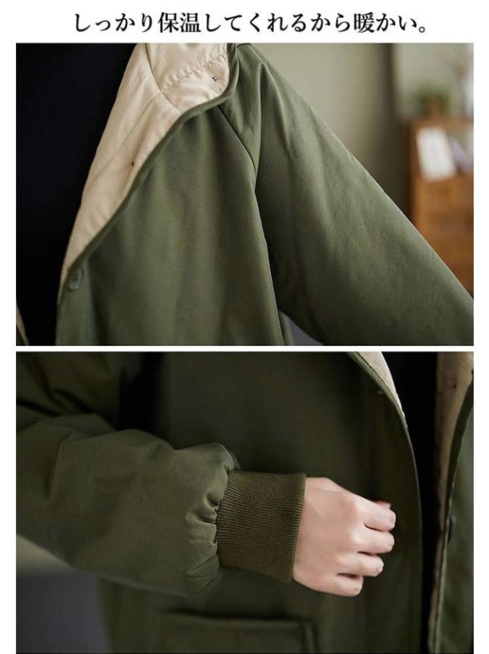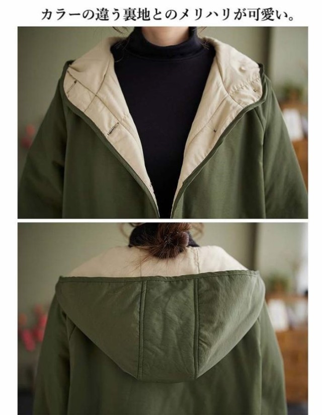 ジャケット アウター レディース ライトアウター フード リブ袖 カジュアル バイカラー 防寒 軽量 冬 モッズ ミリタリーアウター