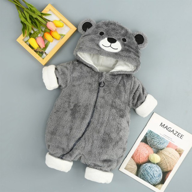 ロンパース 長袖 男の子 女の子 ベビー服 カバーオール 防寒着 秋冬 新生児 ジャンプスーツ 可愛い 暖かい 前開き フード付き 百日祝い