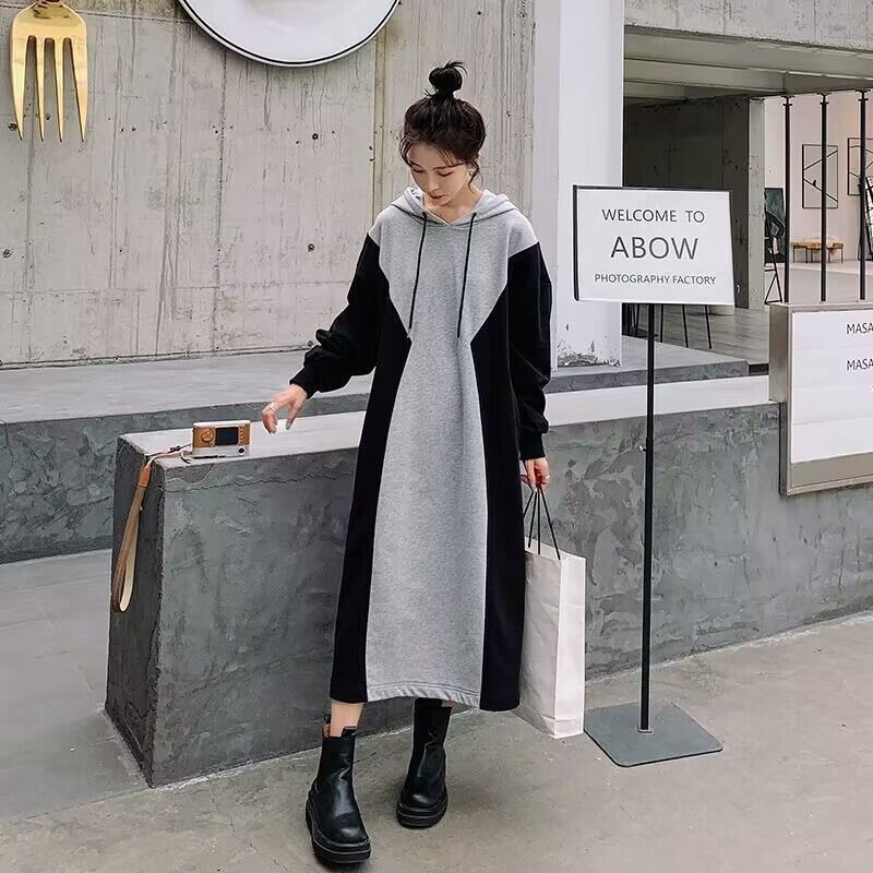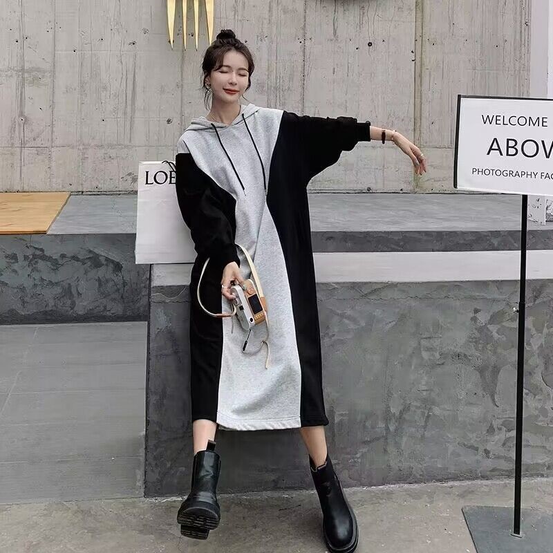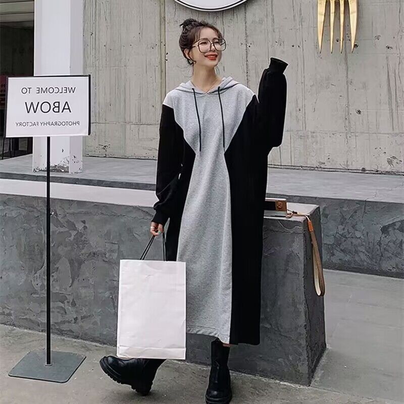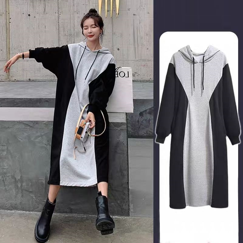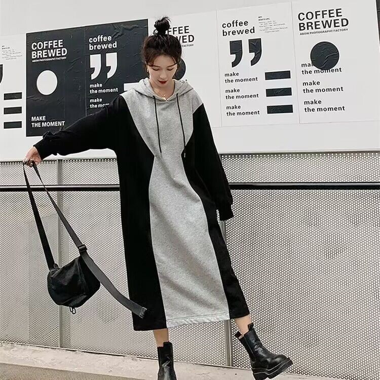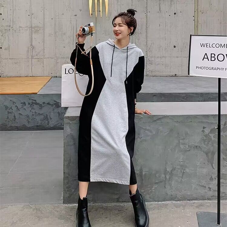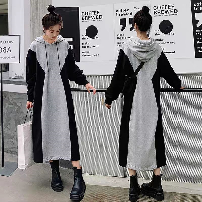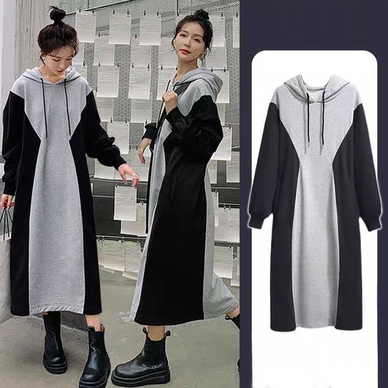 レデイース服ワンピースロング長袖マキシワンピース2024秋新品ゆったりフード付き切り替えワンピM-3XL春秋通勤通学 袖なしロング マキシ丈ワンピ