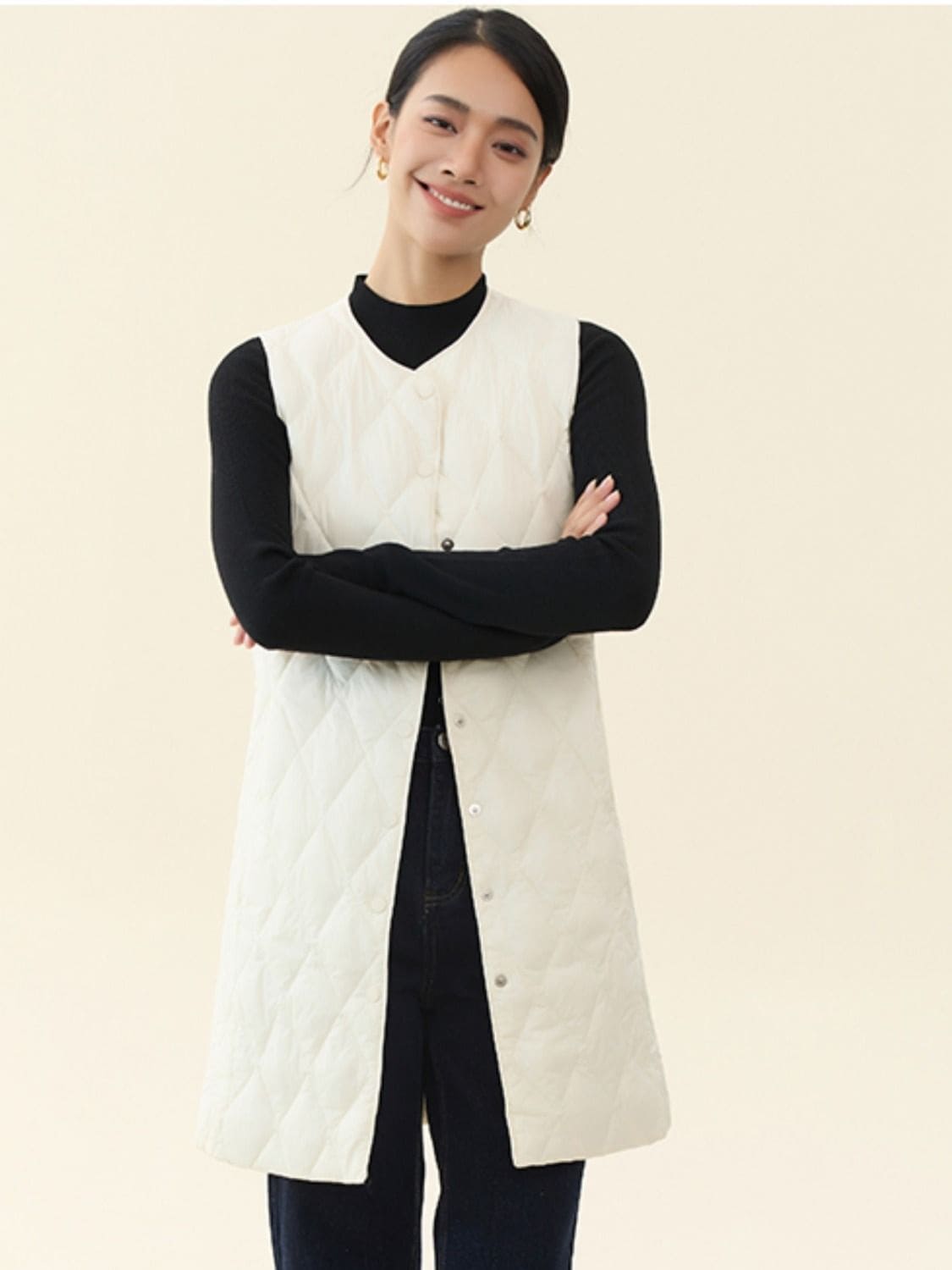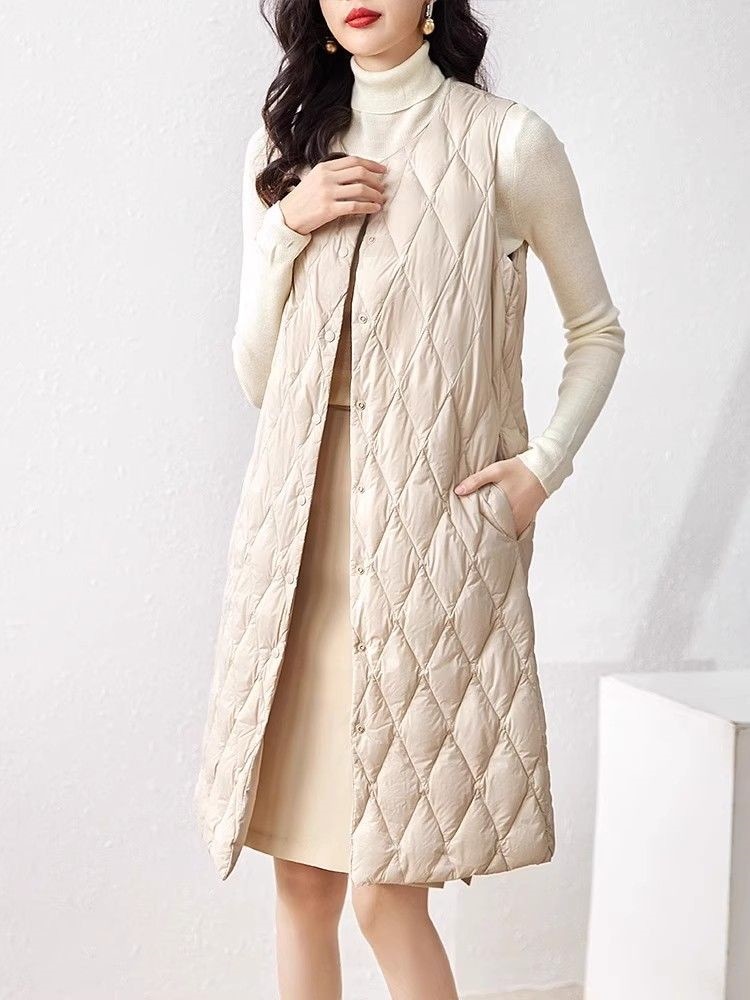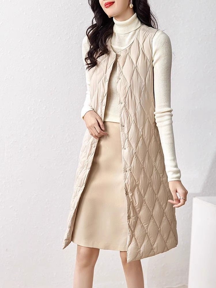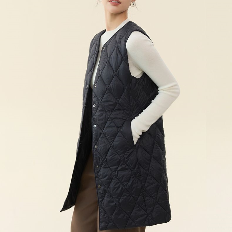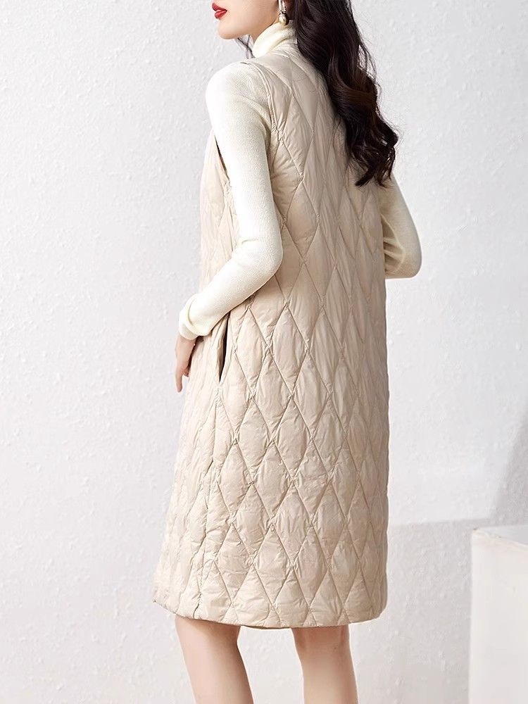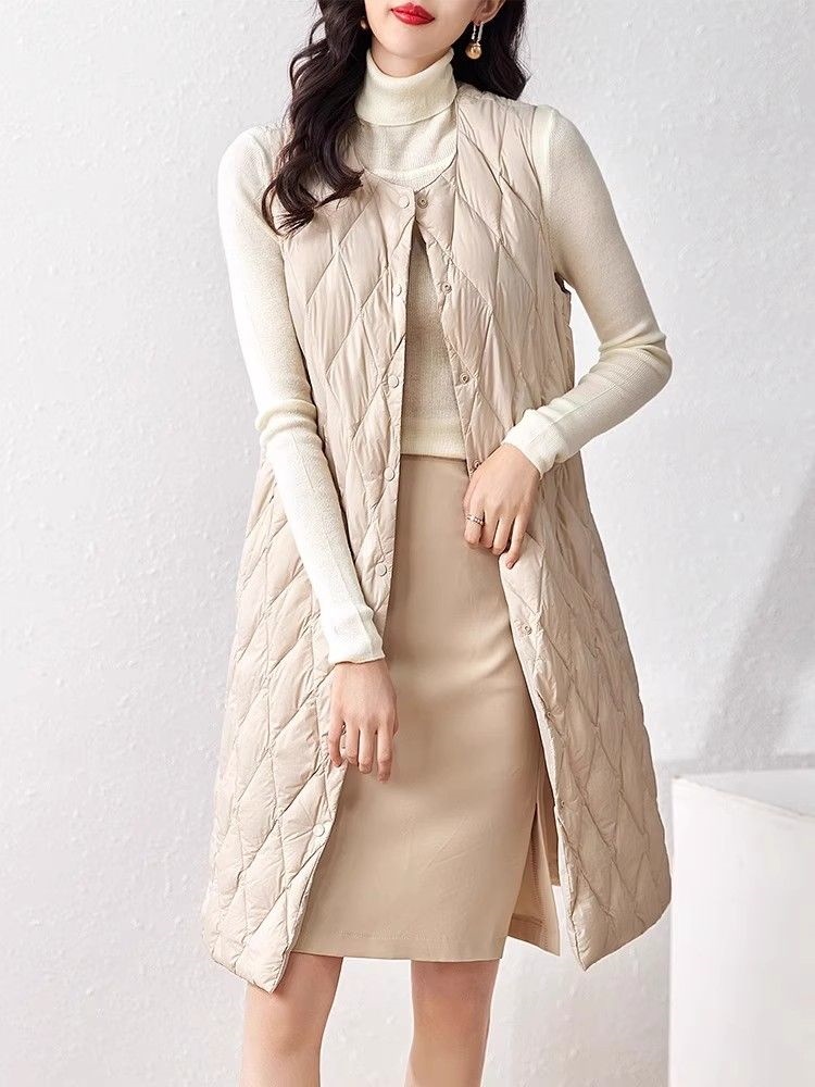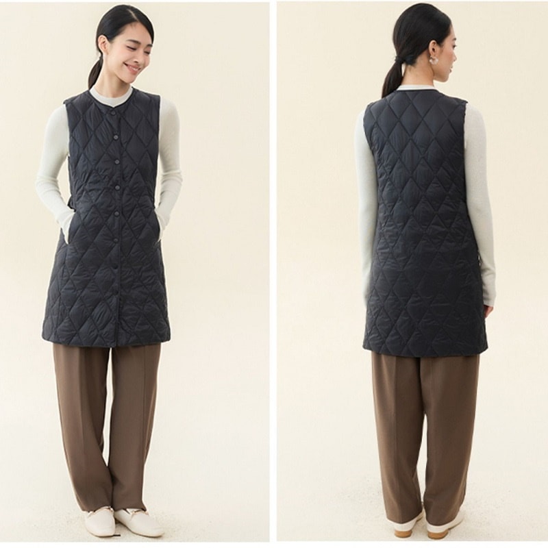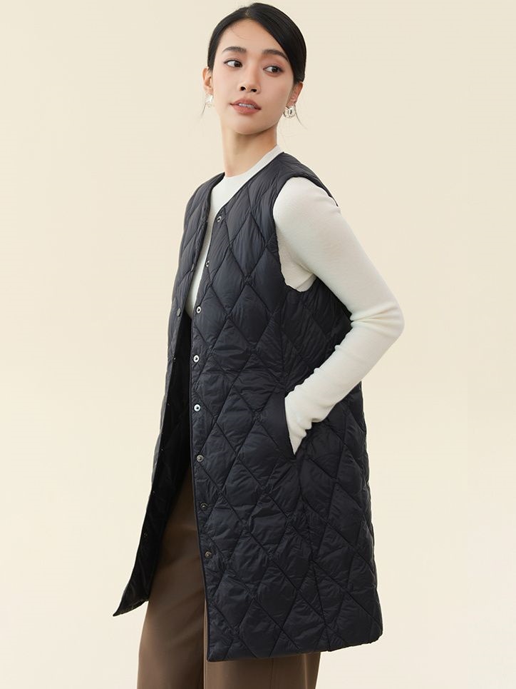 レデイース服アウターベスト中綿ベスト2024秋新品軽量薄型ラウンドネックVネックミドル丈5カラー通勤通学S-2XL ベスト