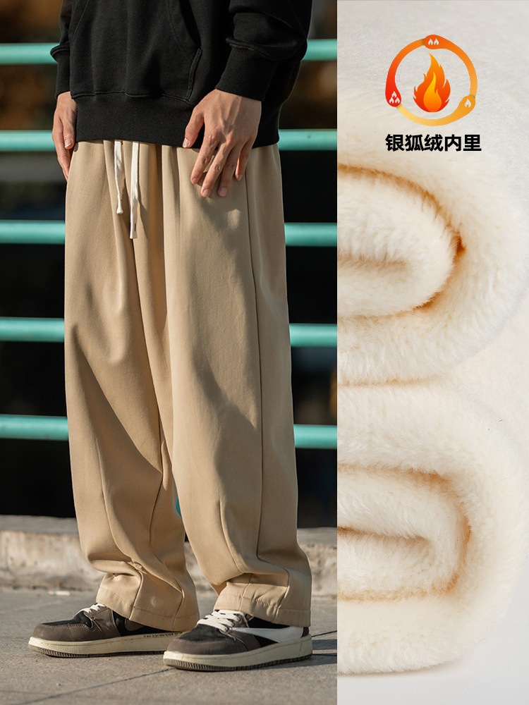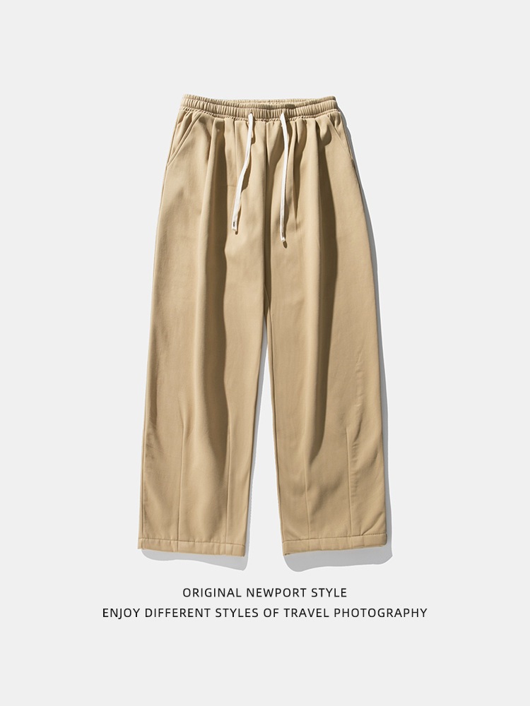 メンズ裹起毛カジュアルパンツ秋冬新作タックデザイン長ズボンゆドローストリングスウェットパンツ ロングパンツ