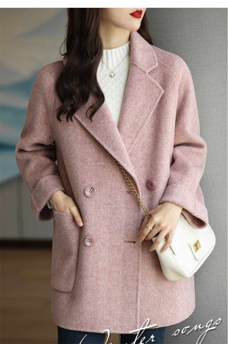 ジャケット 冬アウター 2023秋冬新作ウールミドル丈コートレディーストレンドファッションヘリンボーン柄ゆったり薄手西洋風小さい婦人服 テーラードジャケット