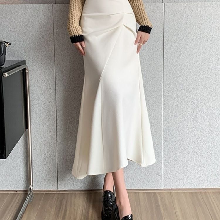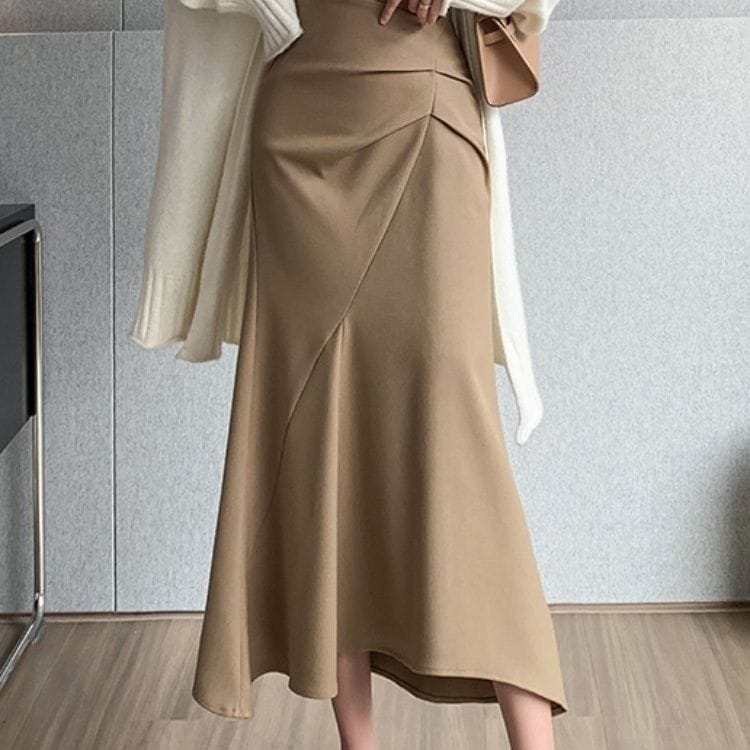 プリーツスカートマキシスカートレディース イレギュラースーツ スカート 春 上質なドレープ 大きく揺れる アンブレラスカート ハイウエスト バッグ ヒップ マーメイドドレス韓国ファッション