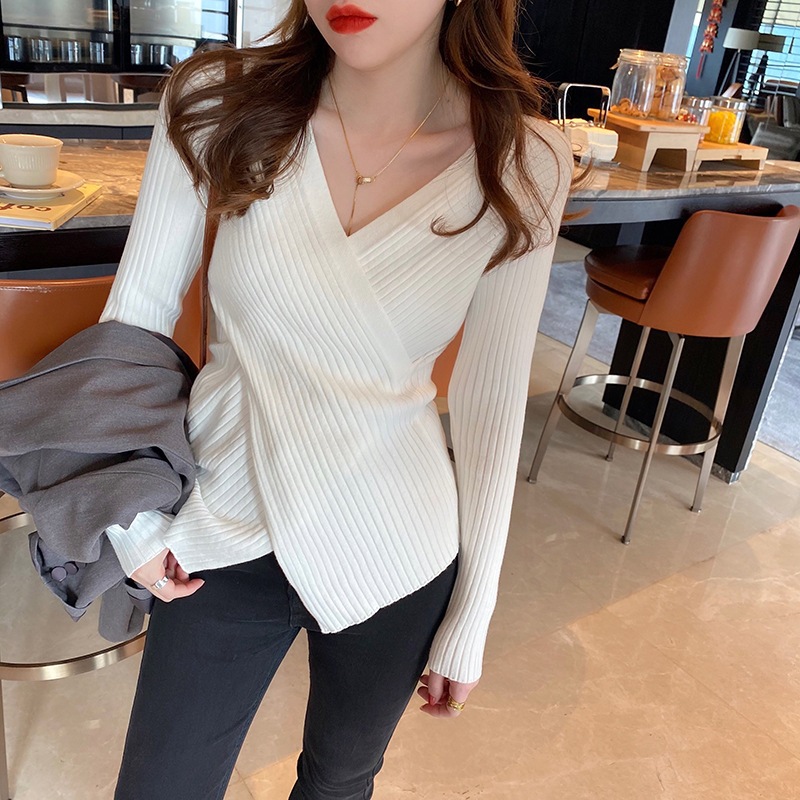 カシミヤタッチ ベーシックニット ニットセーター アンダーウェア Vネック ウエスト引き締め ブラウス レディース トップス 百掛け アウター クロス 長袖 シャツ 日焼け止め