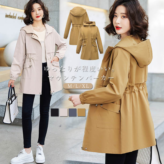 マウンテンパーカー トレンチコート スプリングコート アウター ジャケット レディース 春コーデ 大きいサイズ コート ロングコート ロング丈 フード付き ジャンパー 無地 体型カバー シンプル カジ