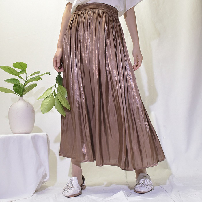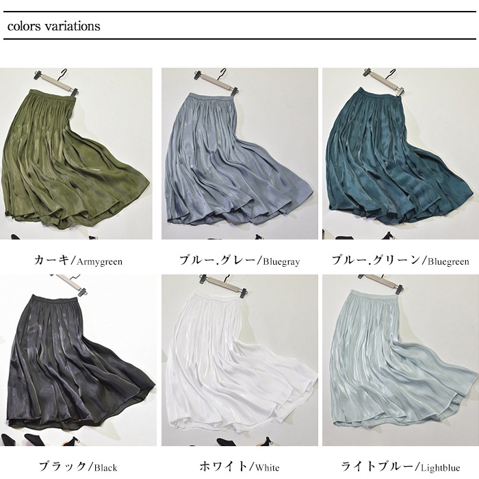 自社生產髙品質 カラバリ豊富艶めき光沢サテンスカート レディース スカート 韓国ファッション マキシ ロングスカート