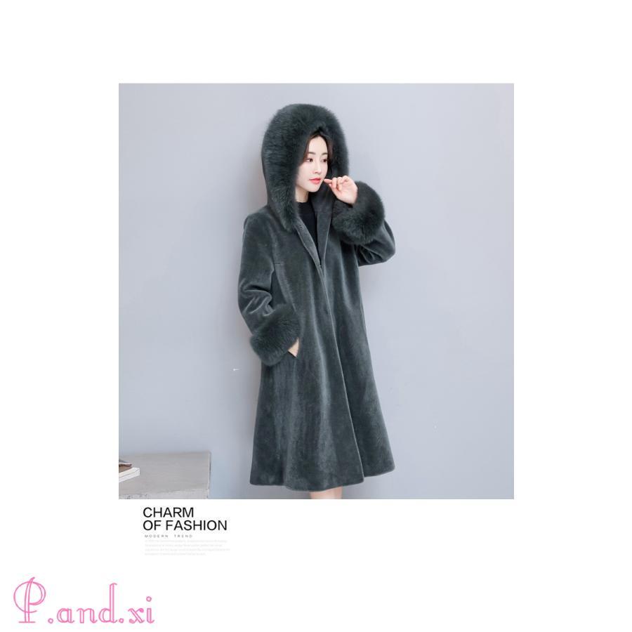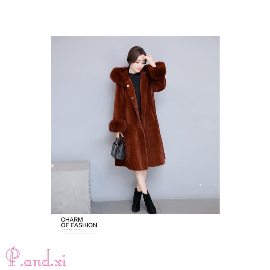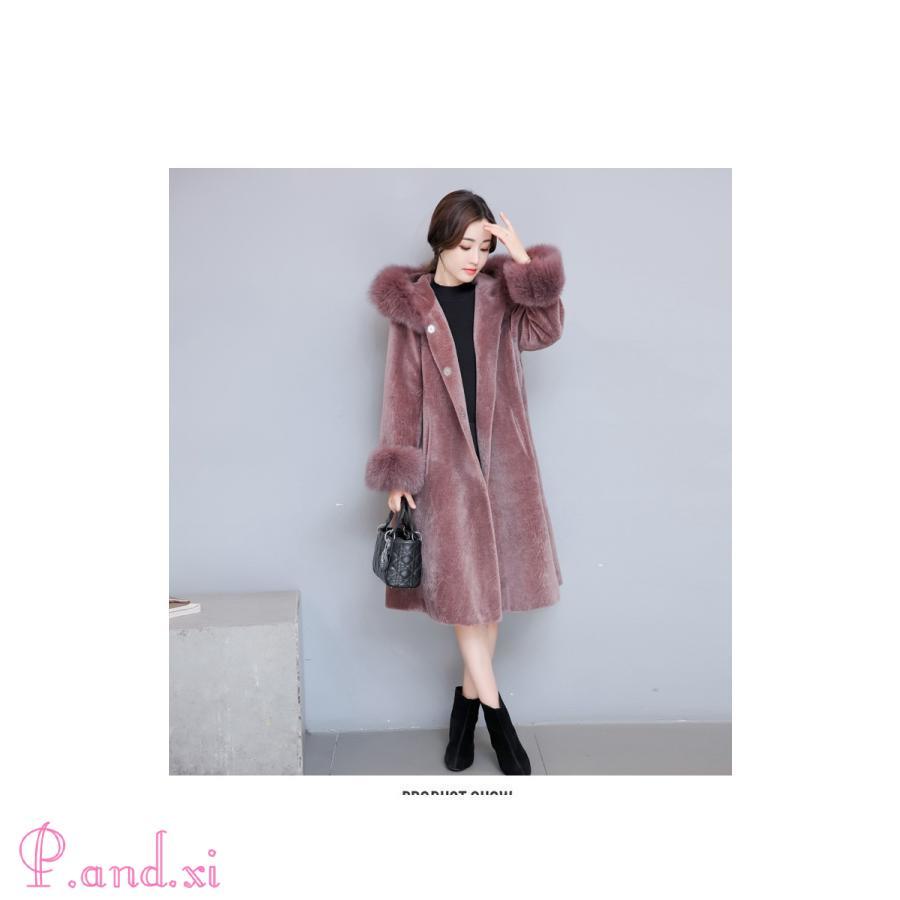 2018冬新作 レディース 暖かい フード付き フェイクファーコート ロング丈 大人かわいい 秋冬用 厚手 Aライン 防寒着 毛皮コート アウター