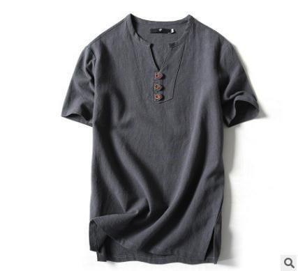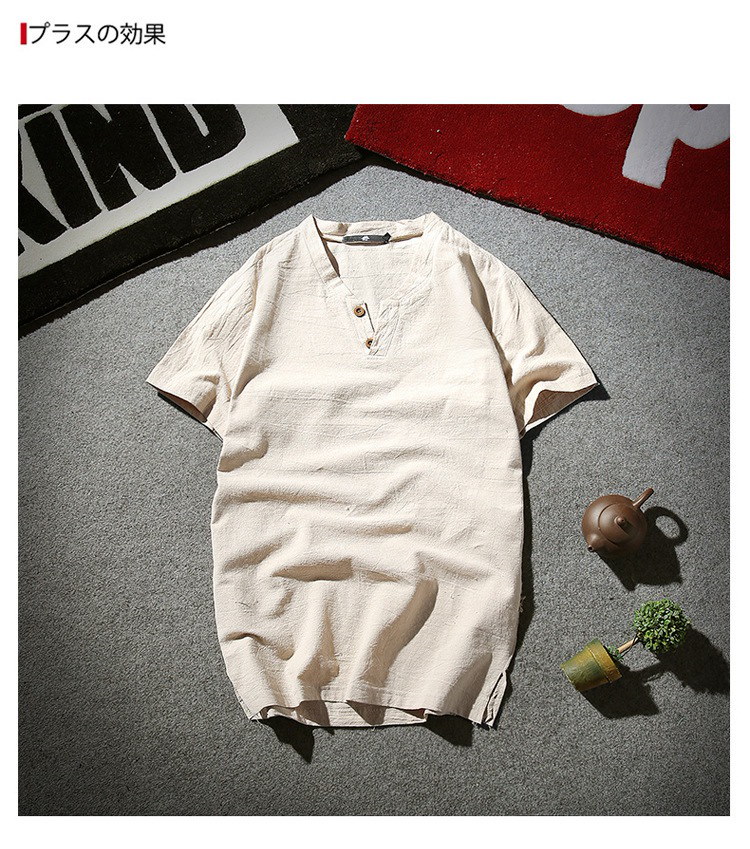 Tシャツ メンズ 半袖シャツ 棉麻 シャツ リネンシャツ 棉麻 Tシャツ 棉麻 おしゃれ トップス Tシャツ メンズ 半袖 無地 Vネック ボタン付き ティーシャツ リ
