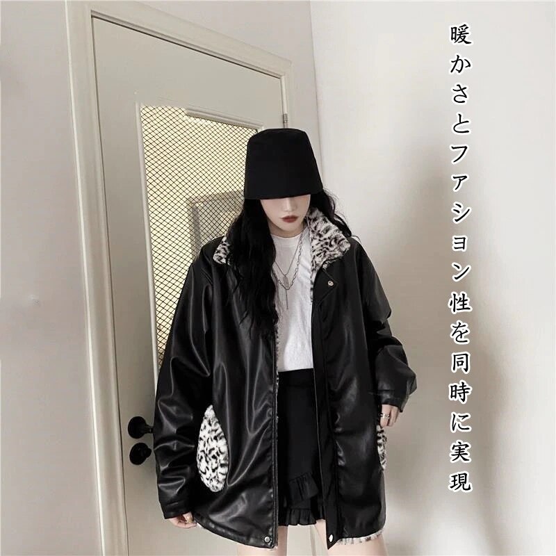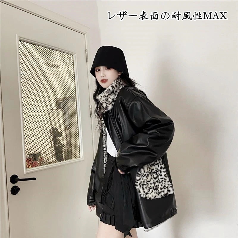 ヒョウ柄 ライダース PUレザー 防風 レザージャケットボア フリース ボア その他 アウター