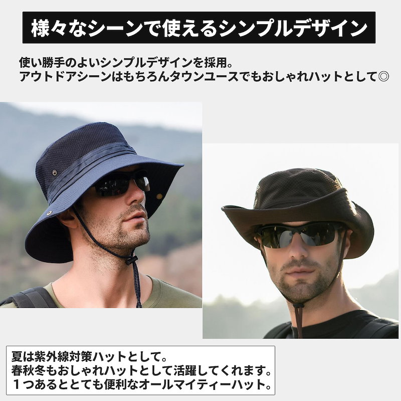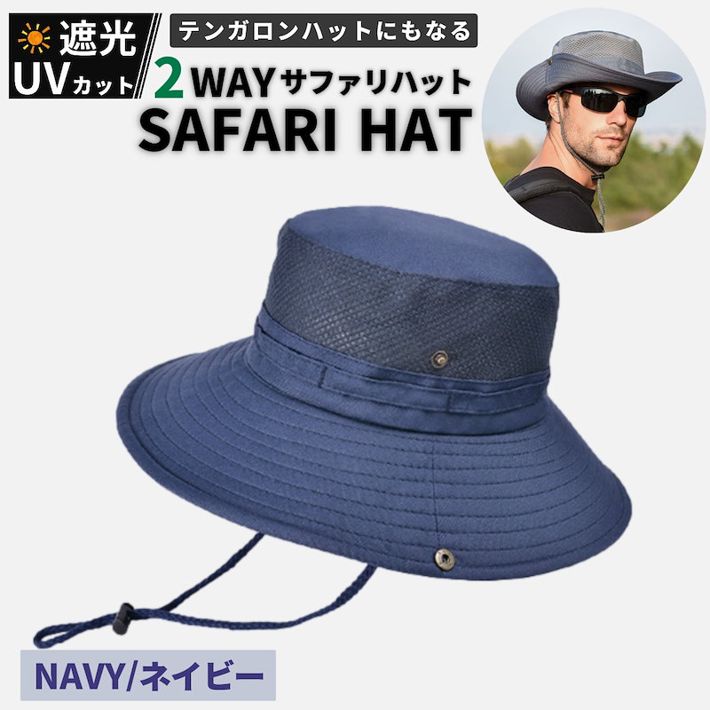 サファリハット 帽子 日焼け防止 日よけ メンズ 首 紫外線 UVカット 日除け おしゃれ つば広帽子 ハット 2WAY テンガロンハット 日よけ帽子 夏 UV 冬 アウトドア