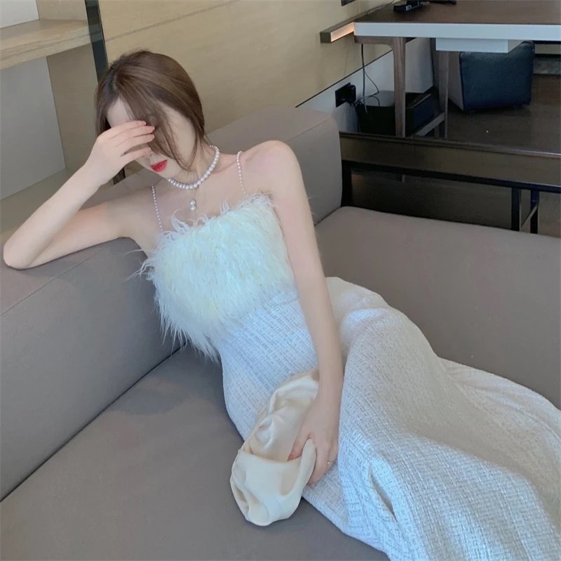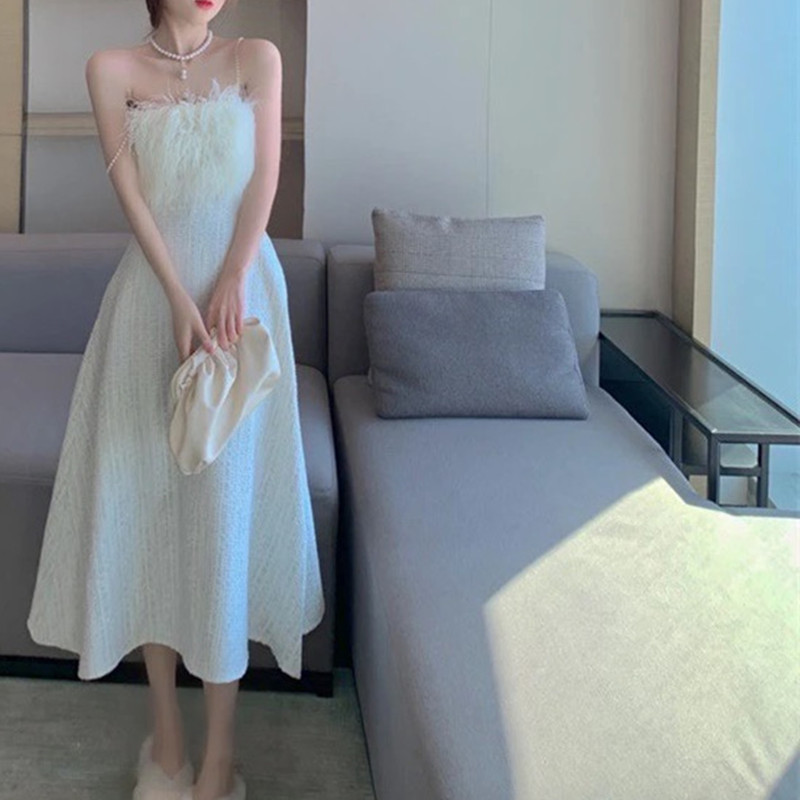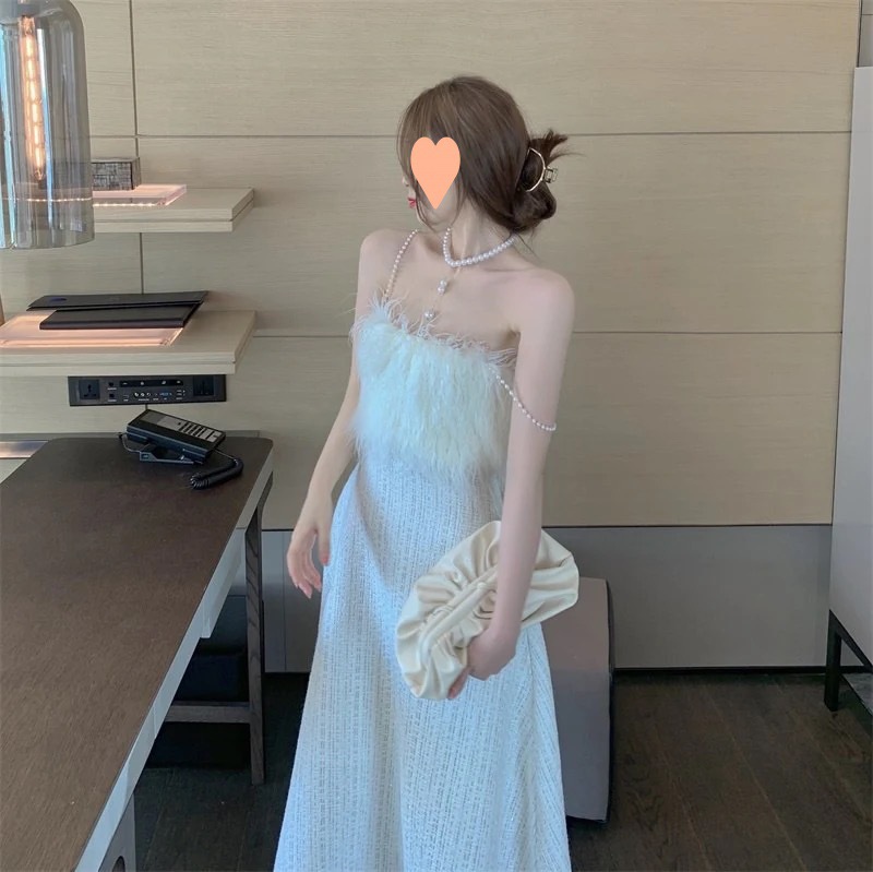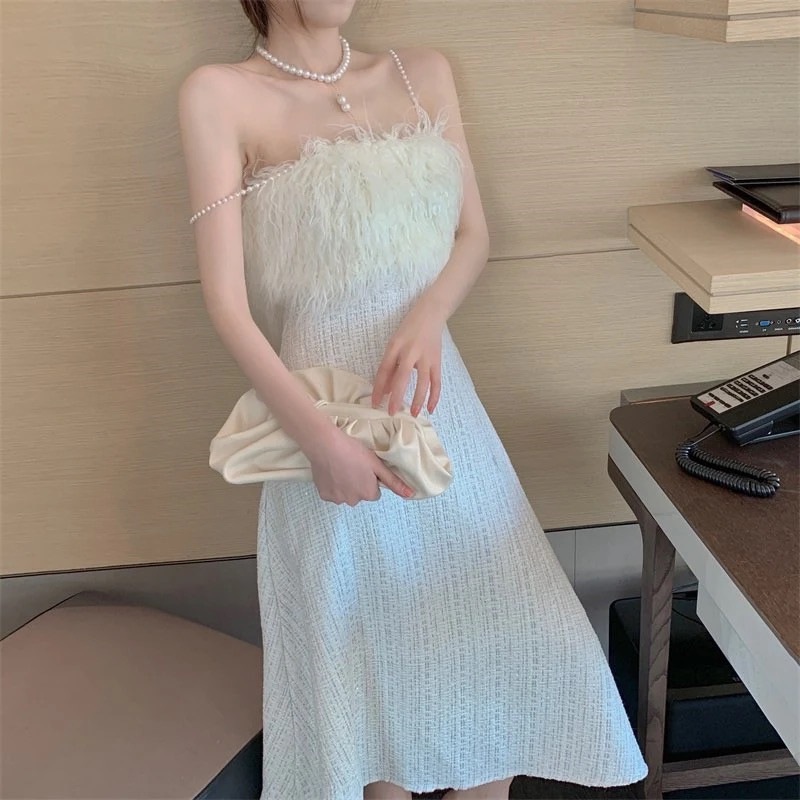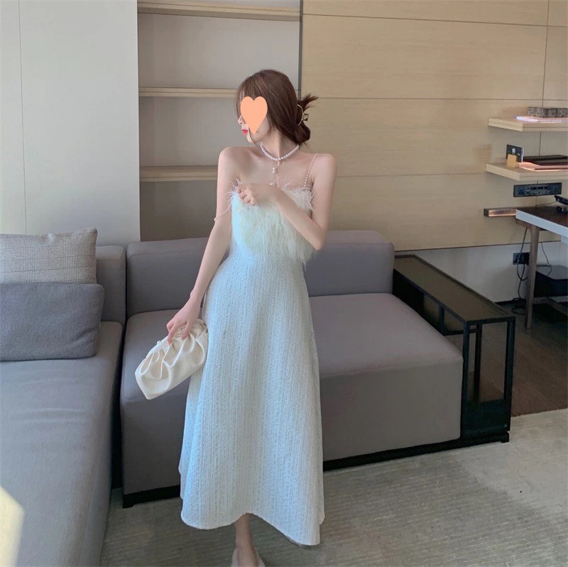 気品セレブは腰を収め胸を拭く一文字肩の白いワンピース女性秋冬のインナーに真珠のサスペンダーの中のロングスカートを 長袖ロング マキシ丈ワンピ