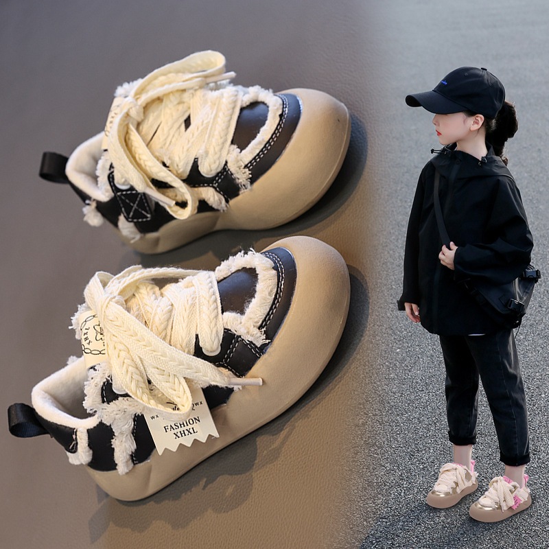 綿靴女性2024冬加絨保温軟底カジュアル板靴女の子厚底増高マドレーヌ白靴 カジュアル靴