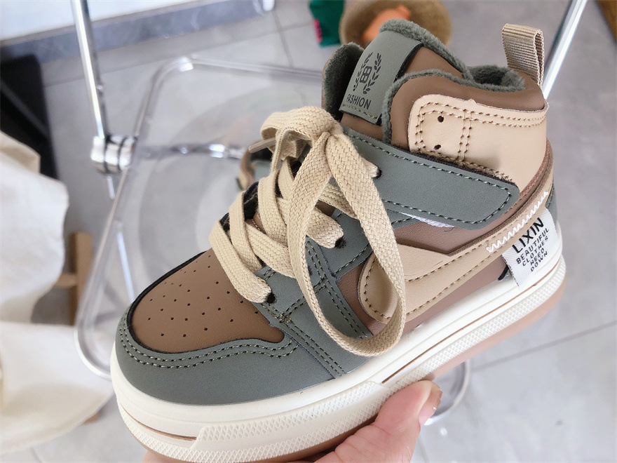 冬の子供用スエード厚底板靴男児中綿靴女児用カジュアルスニーカー韓国版二綿ランニングシューズ カジュアル靴