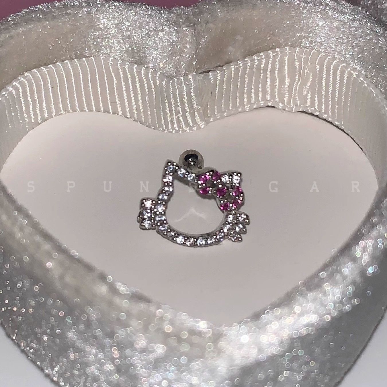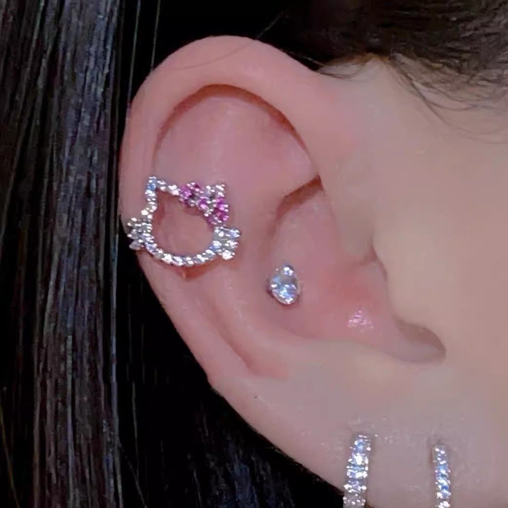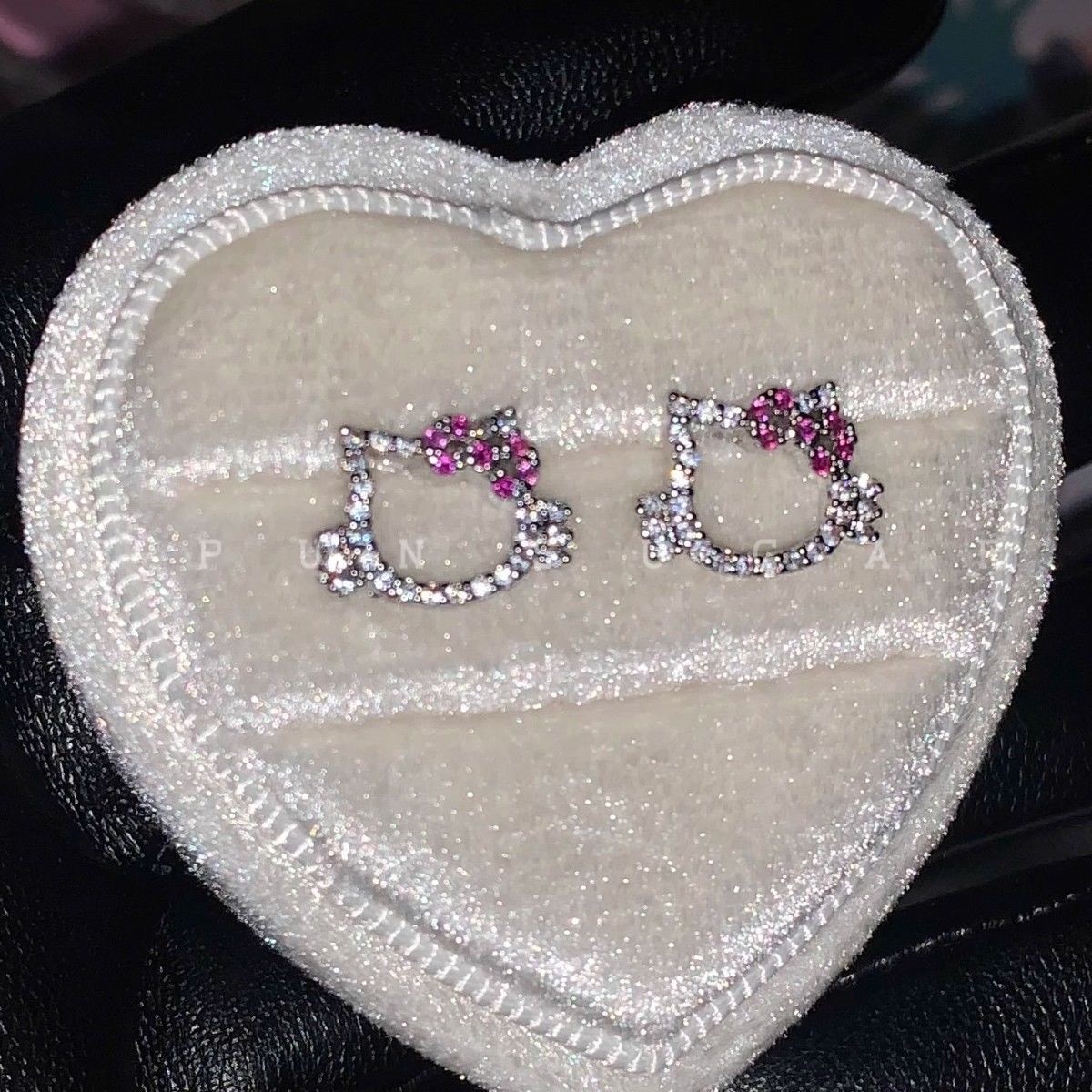 かわいい kitty 満ドリル リボン イヤリング チタン鋼 ピンク 少女 ファッション キラキラ ピアス ピアス