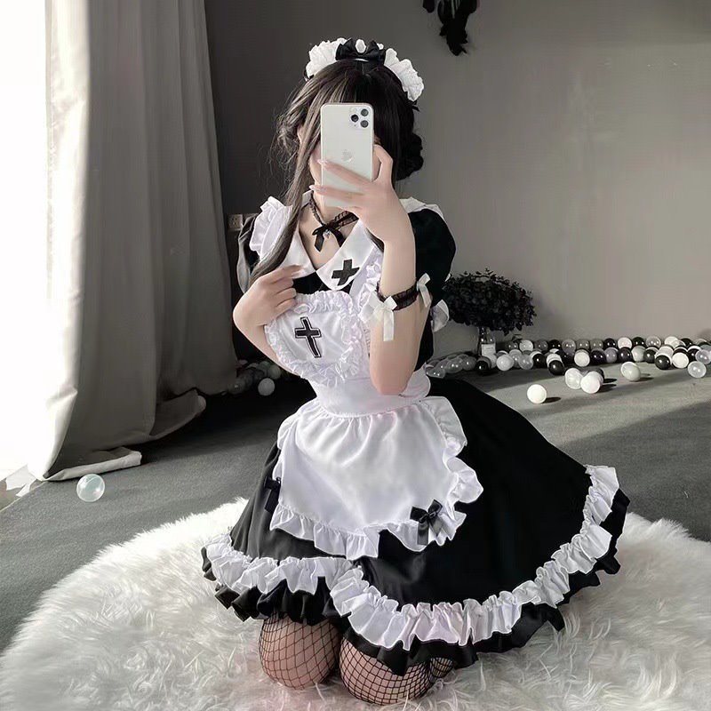 メイド服 コスプレ ワンピース ロリータ 仮装 衣装 半袖 アリス風 コスチューム 制服 レディース メンズ セット 文化祭 学園祭 可愛い メイドカフェー 女装 仮装