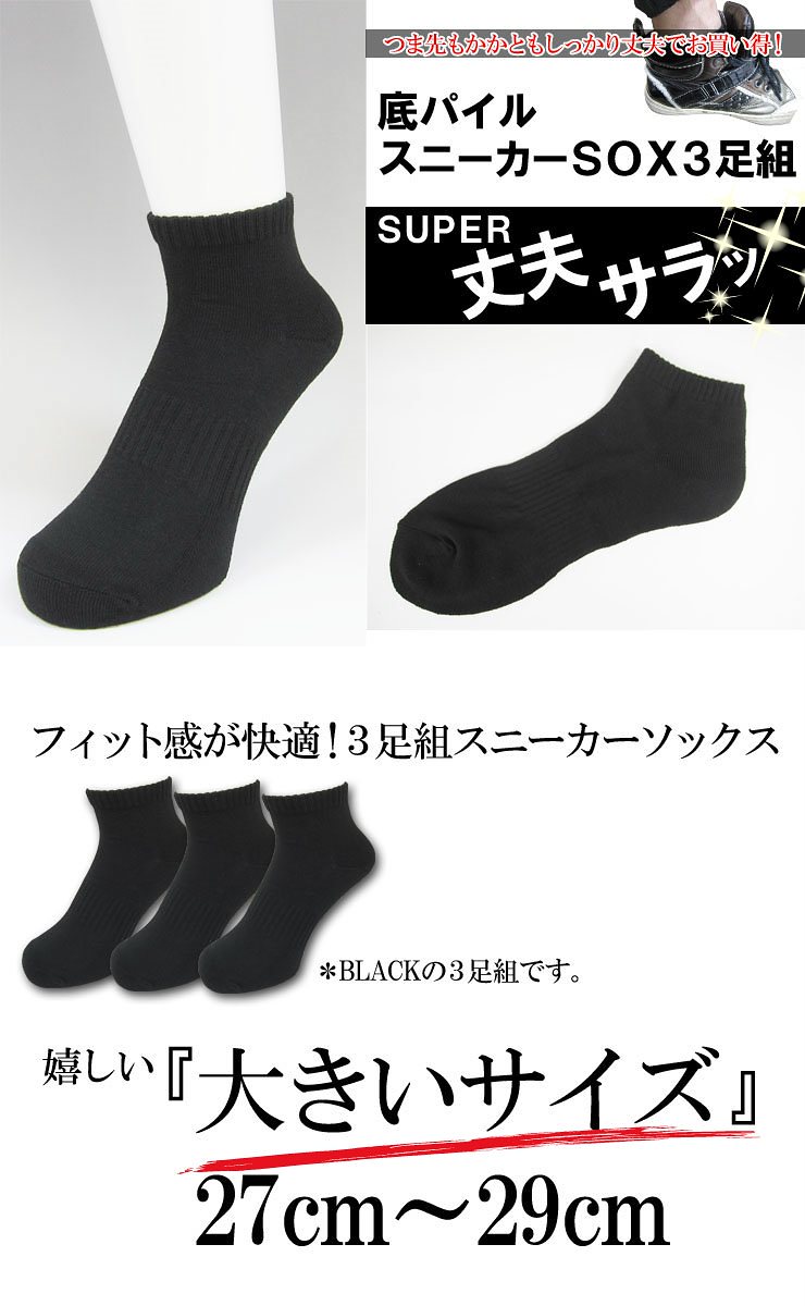 靴下 メンズ くるぶし 大きいサイズ スニーカー丈ソックス 3足組 くるぶしソックス メンズ スニーカーソックス メンズ スニーカーソックス 29cm 靴下 メンズ 大きいサイズ(00755