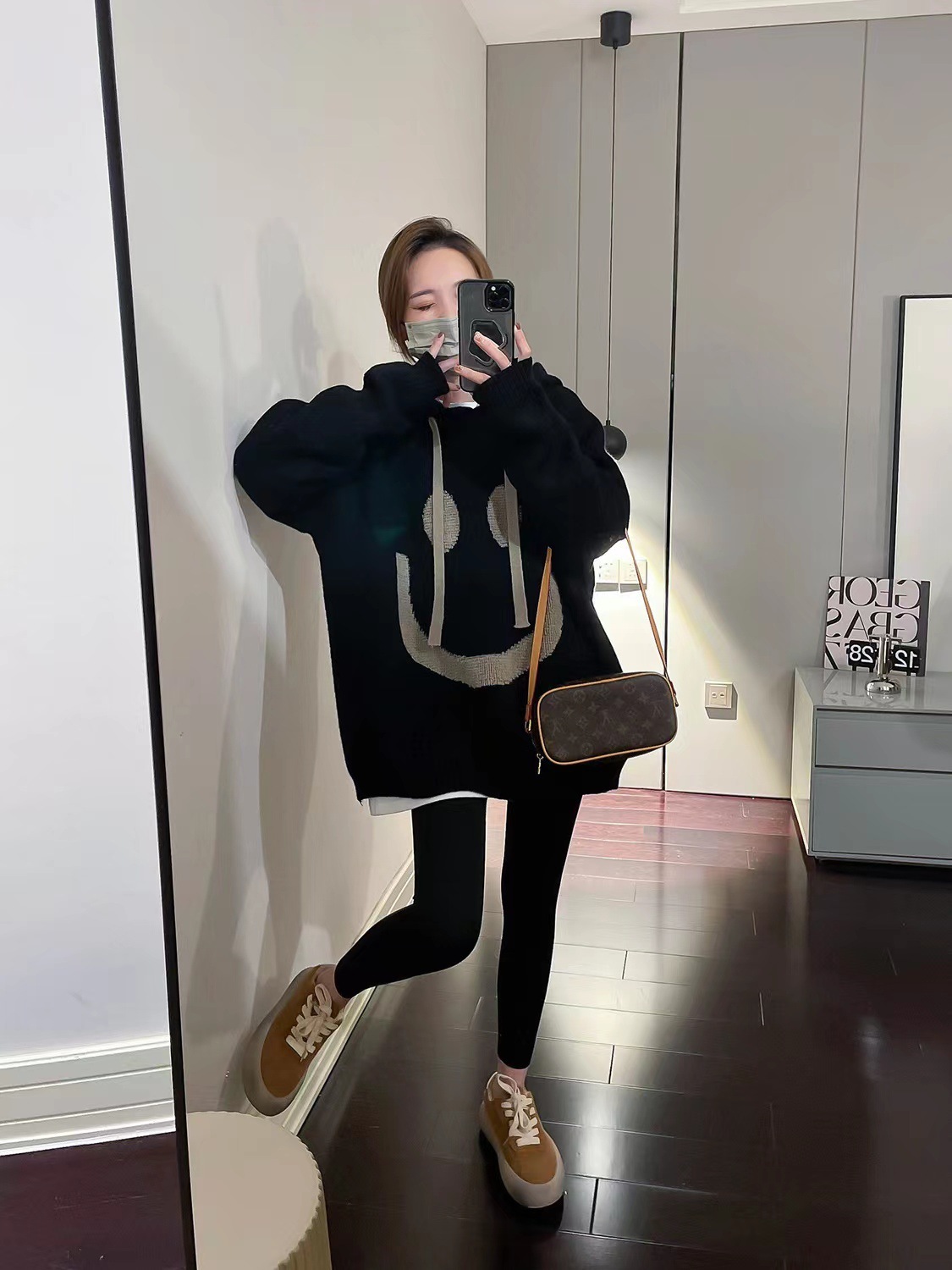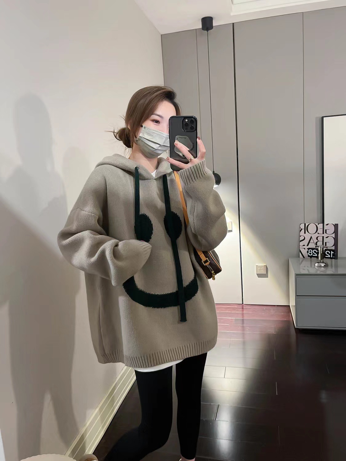 厚手カシミヤタッチ smile 韓国ファッション ストライプ 人気なリプニット スウェット パーカー フード付き アンダーウェア ハイネック 裏起毛 ベーシックニット ニット カーディガン セーター
