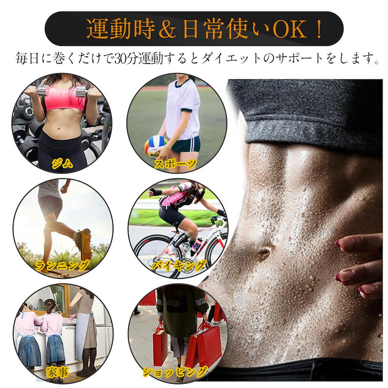 ●ダイエット向けに大人気!薄くて目立たないので家事でもお買い物でもジムでもスポーツでも、巻くだけでお腹周りの発汗をサポートします。