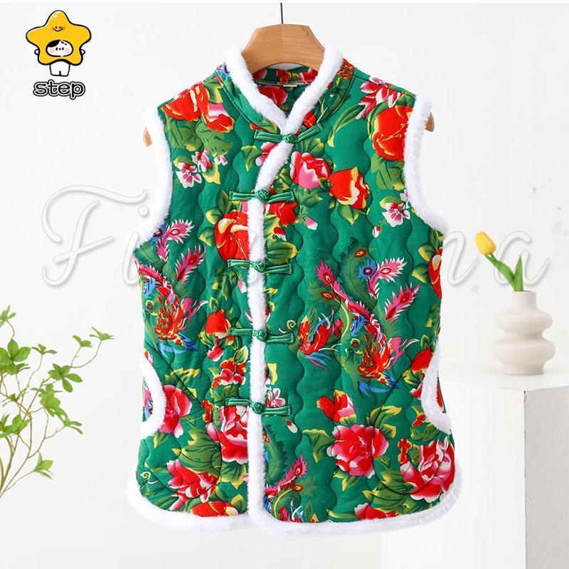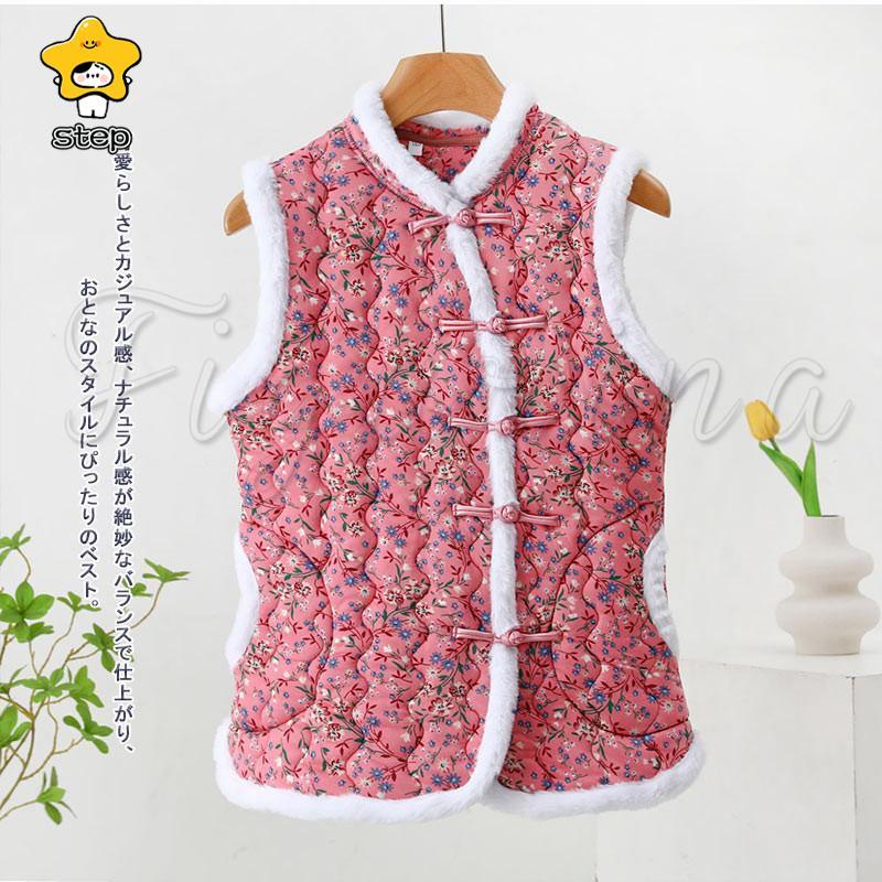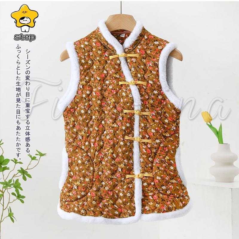 中綿ベスト レディース インナーベスト 花柄 中綿 ライトダウン ファーベスト ショート レディースベスト ダウン風ベスト レディース ジレ