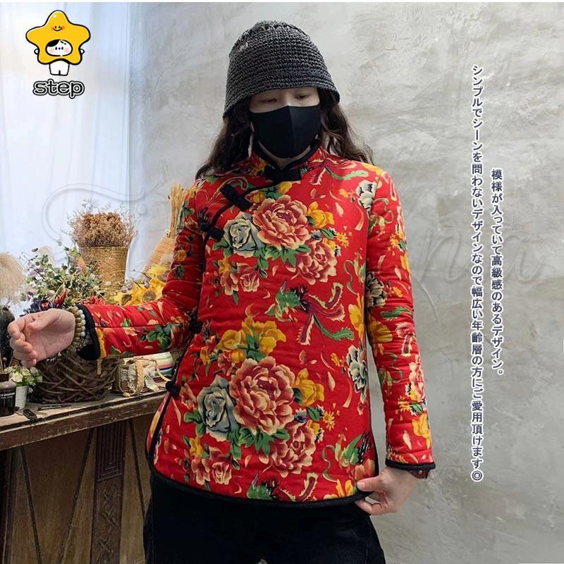 チャイナボタン 中綿コート コート 綿入り ショート丈 レディース アウター 厚手コート 花柄 ジャケット 立ち襟 刺繍 ショート丈 その他 アウター