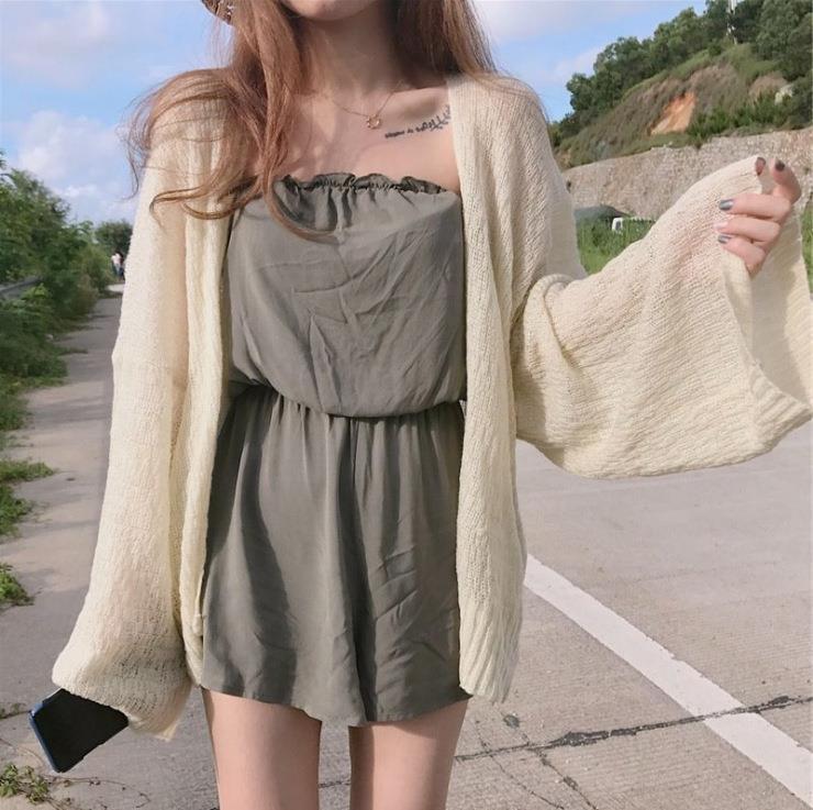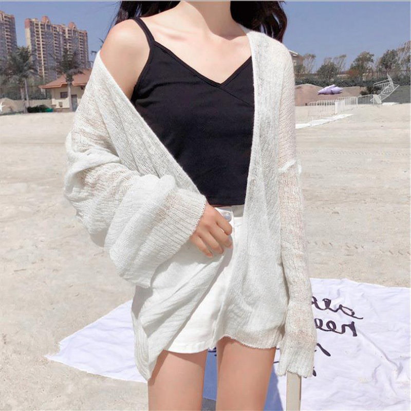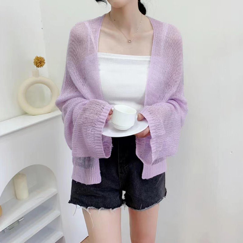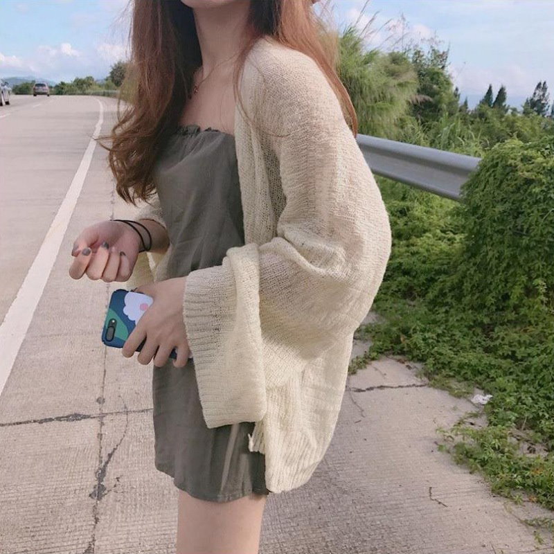 新入荷 ニット カーディガン 氷 糸のコート 日焼け止め コート夏 ゆったりとした外は肩を掛けてエアコン シャツを着ますファッション薄手 サマーニット ゆったり 長袖 無地