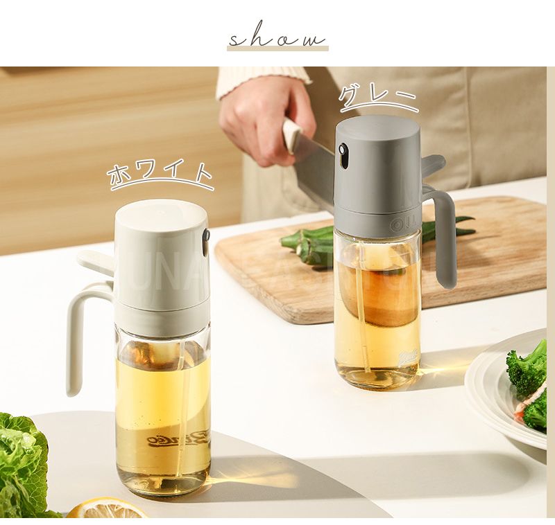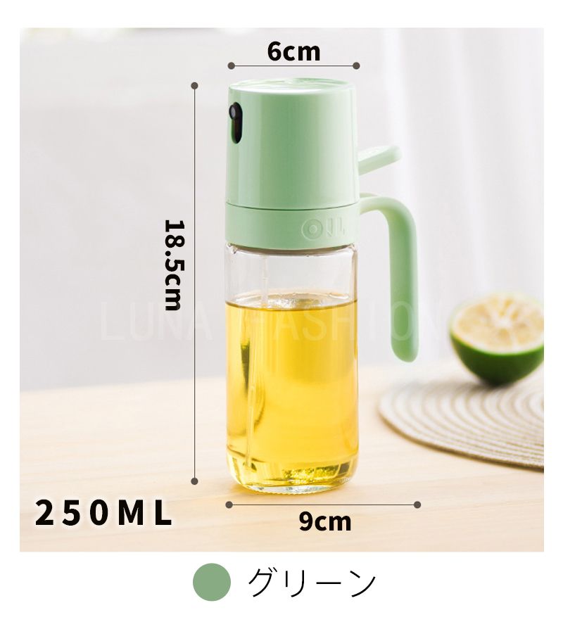 オイルスプレーボトル 霧吹き ガラス オイルスプレー 透明 加圧式 多機能 食卓用 家庭用 調理用 料理用 250ml 酢 醤油入れ 液だれしない 油さし オイル用 油用 詰め替え おしゃれ キャンプ
