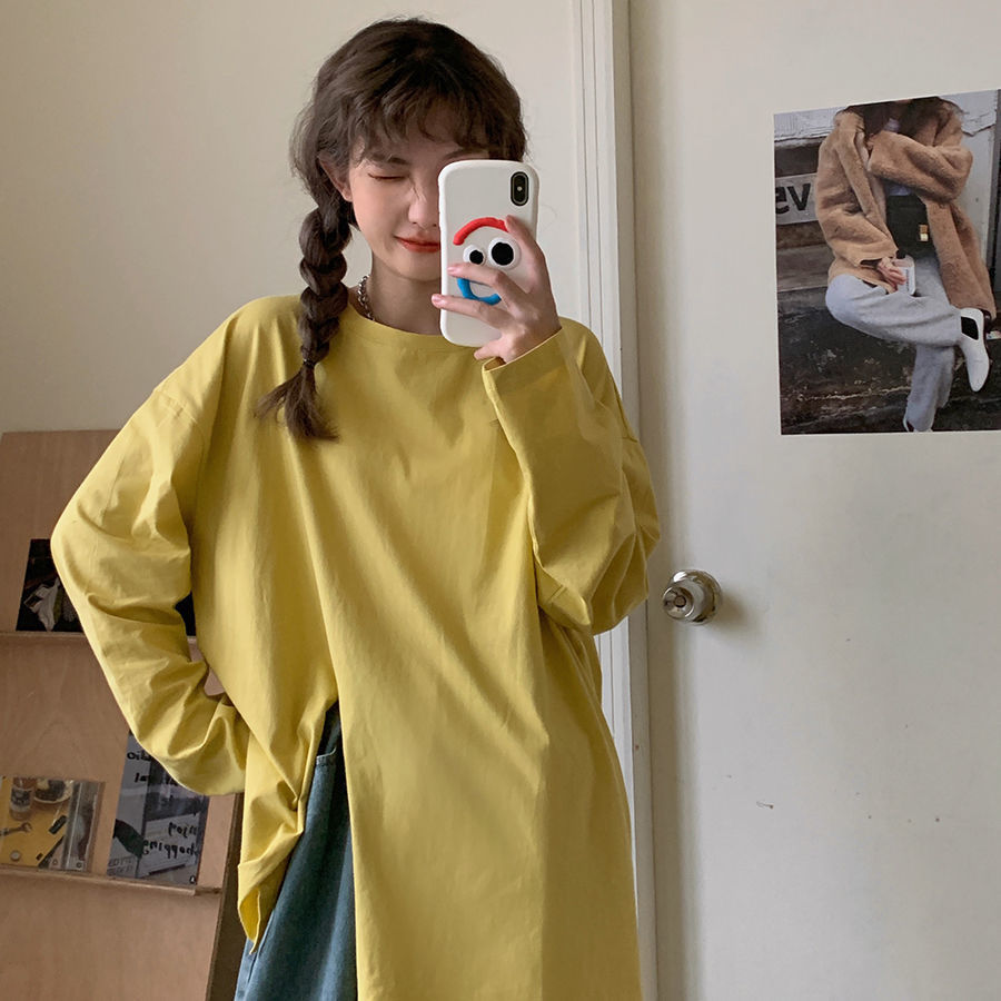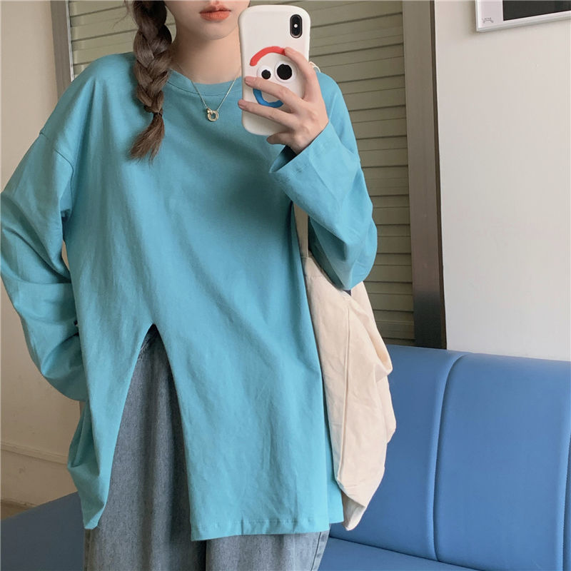 设计感网红同款开叉长袖T恤卫衣女装春秋季宽松上衣ins潮 Tシャツ カットソー