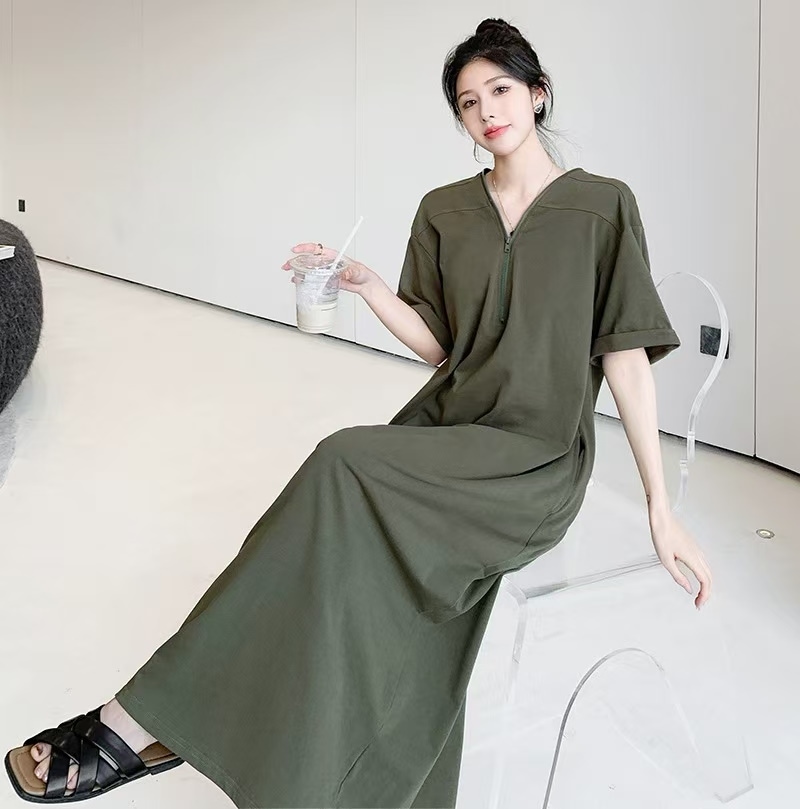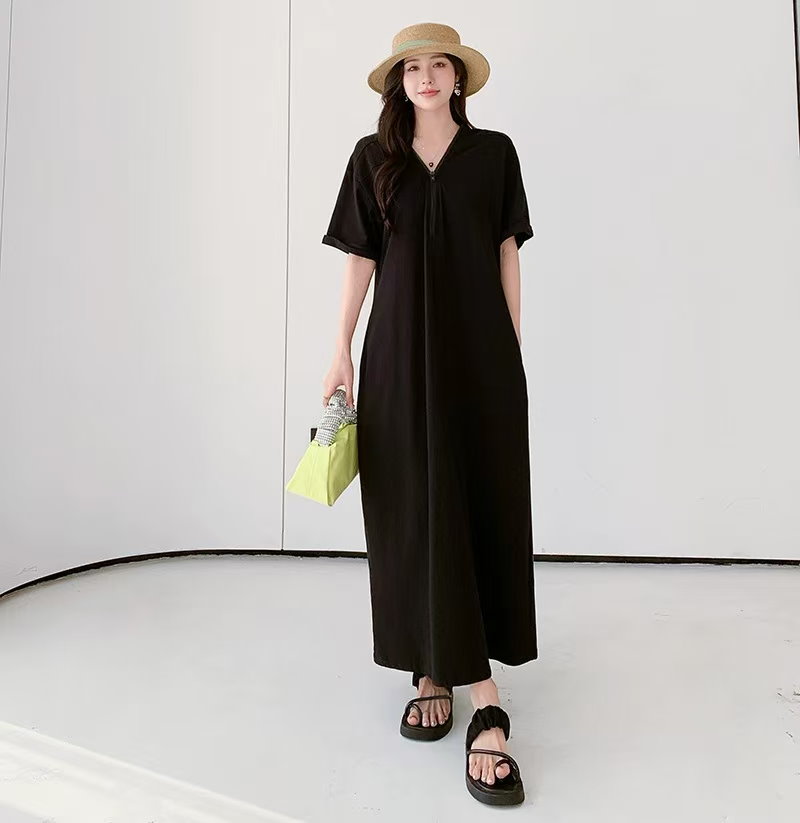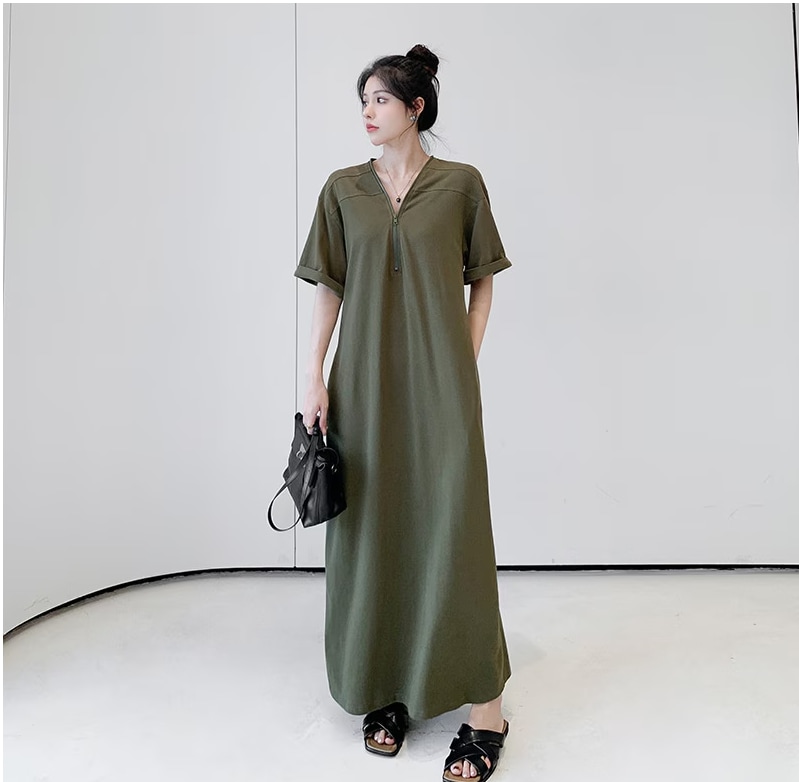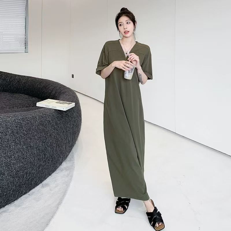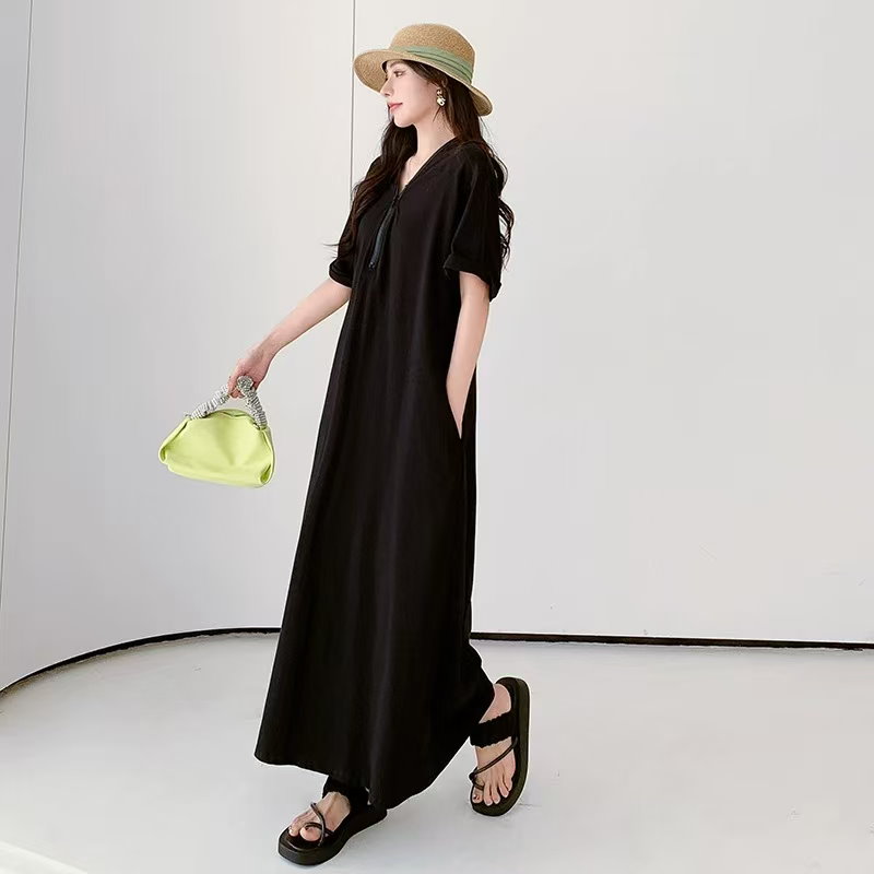 シャツワンピース バー無地ゆったり 着痩せ レディースロング ワンピース ロング丈マキシ丈体型カ 半袖 夏