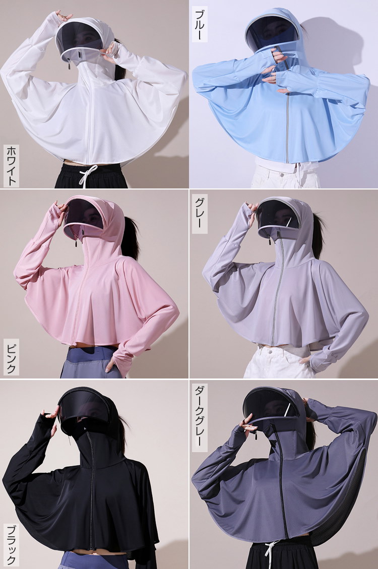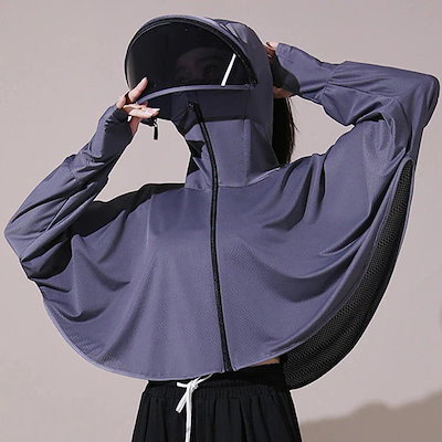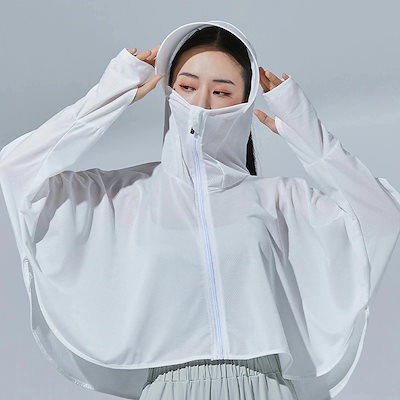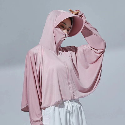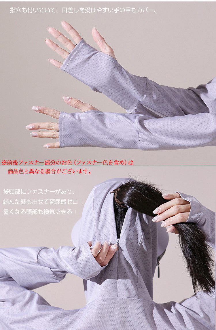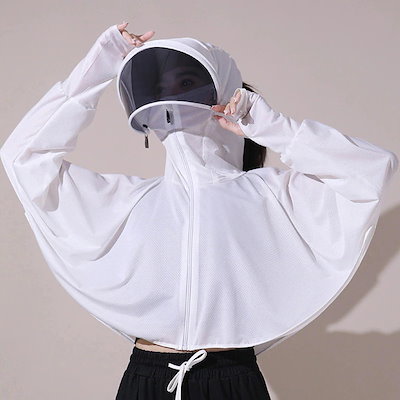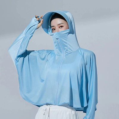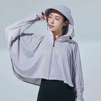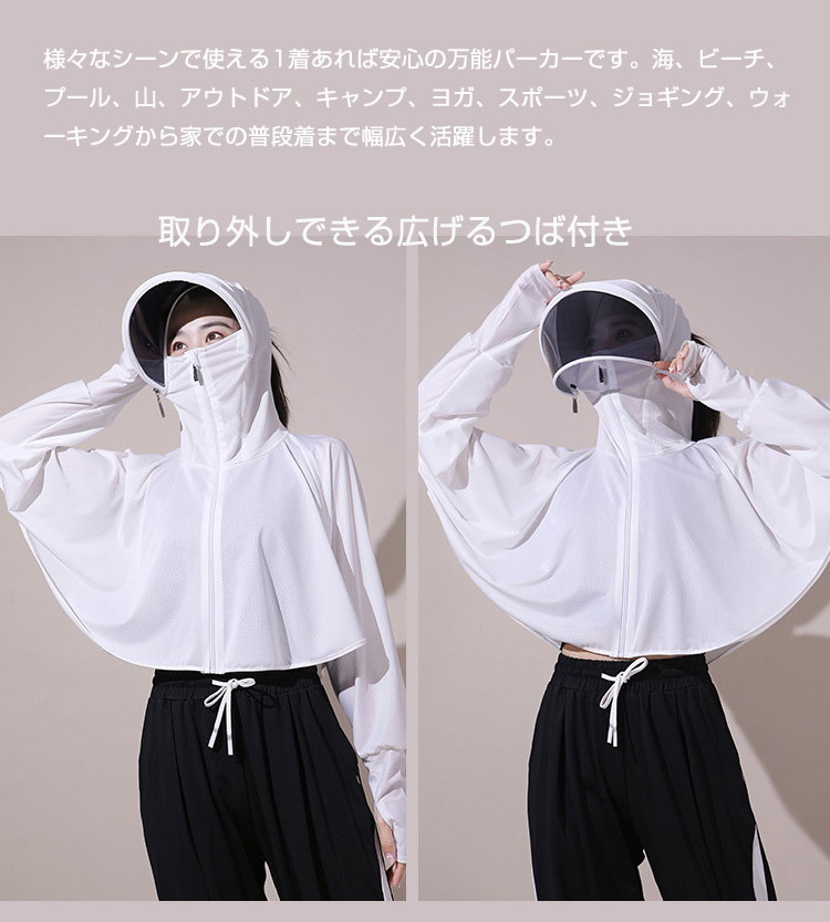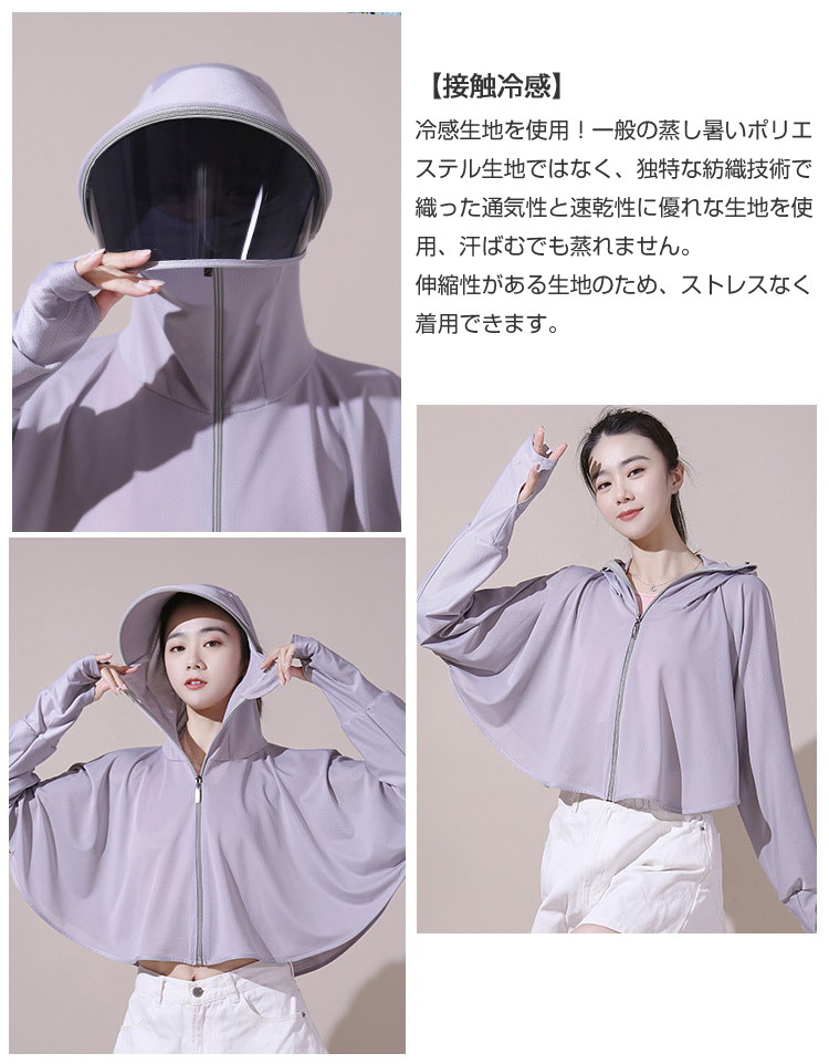 uvカット パーカー UPF50+ 接触冷感 紫外線率99.9% 指穴 つば付き ラッシュガード レディース 長袖フェイスカバー UV パーカー 冷房対策