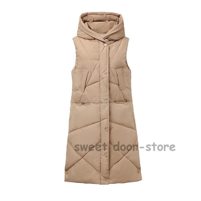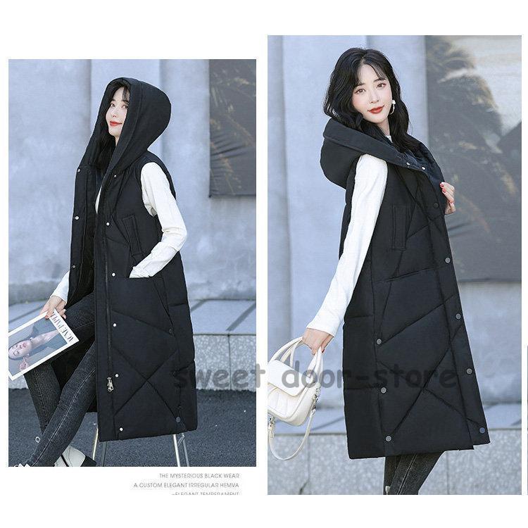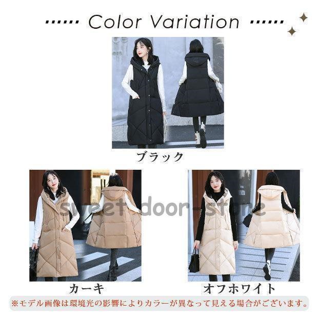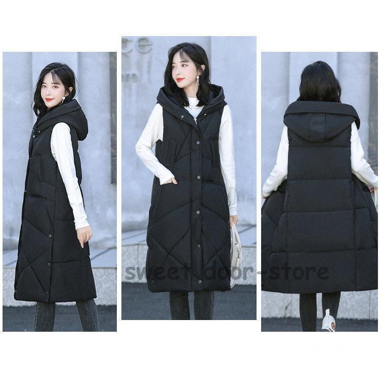 ベスト レディース 中綿ベスト ロングベスト ダウンベスト トップス フード付き 前開き 暖かい 防寒 秋冬 アウター 軽量 着痩せ ベスト