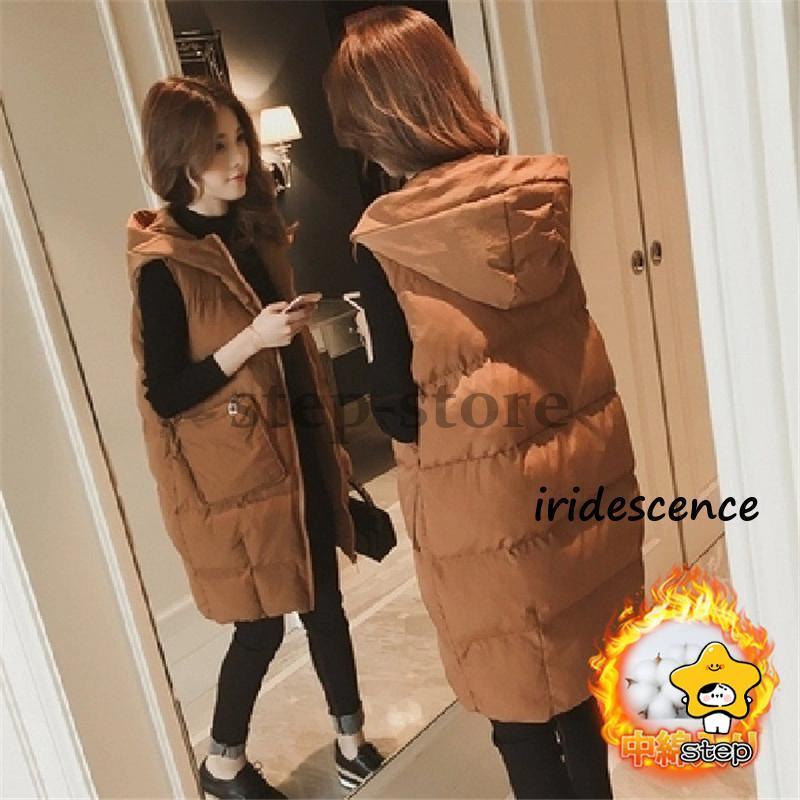 ダウンベスト レディース ベスト 秋冬 ロング丈 中綿入り 中綿ベスト フード付き ダウンジャケット アウター 防寒 あたっか 暖かい ノースリーブ ダウンコート