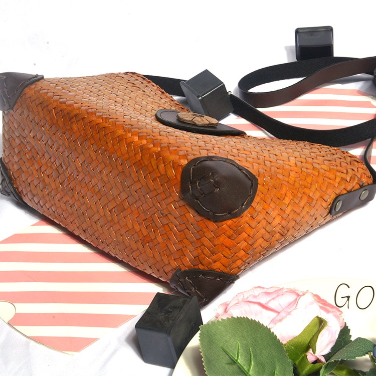 2024新潮ネット赤麦わら編みバッグエスニック風ハンドメイドニットシングルショルダー斜め掛けレディースレトロストローバッグ ハンドバッグ