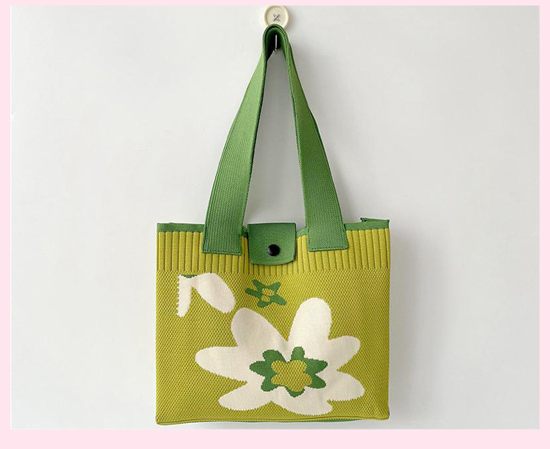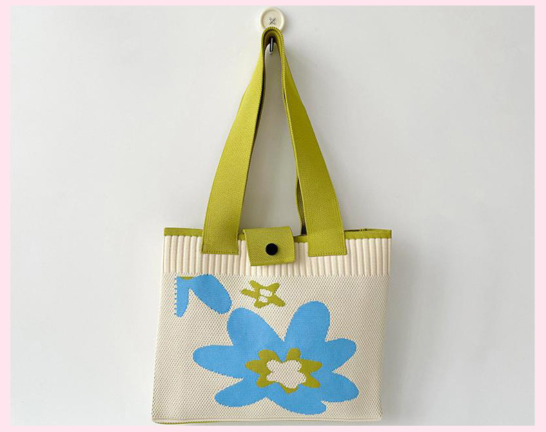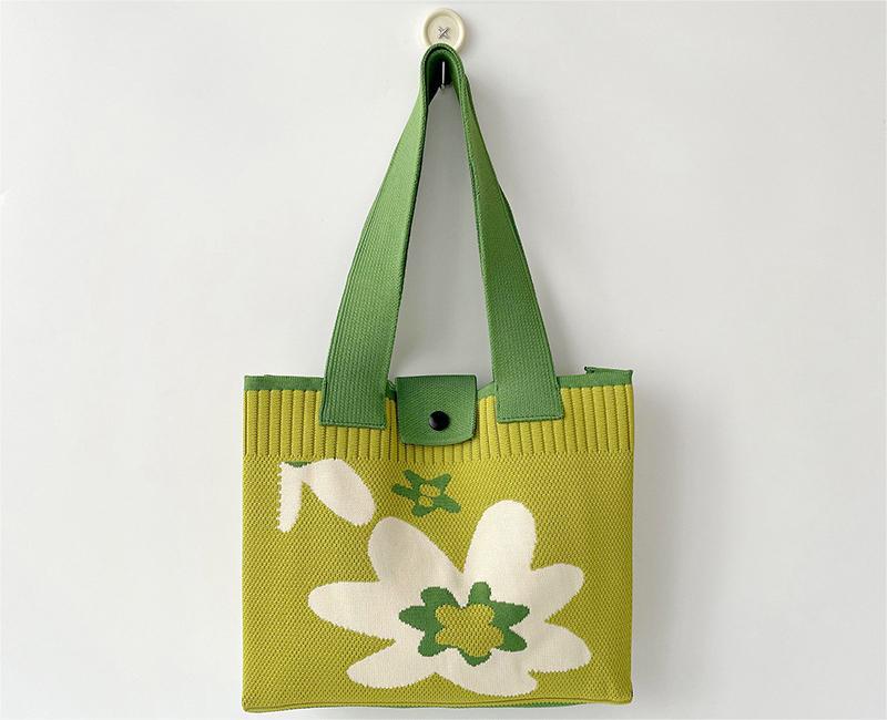 花ニットショルダーバッグ春秋夏大容量手持ちトートバッグアウト便利な収納バッグ ショルダーバッグ