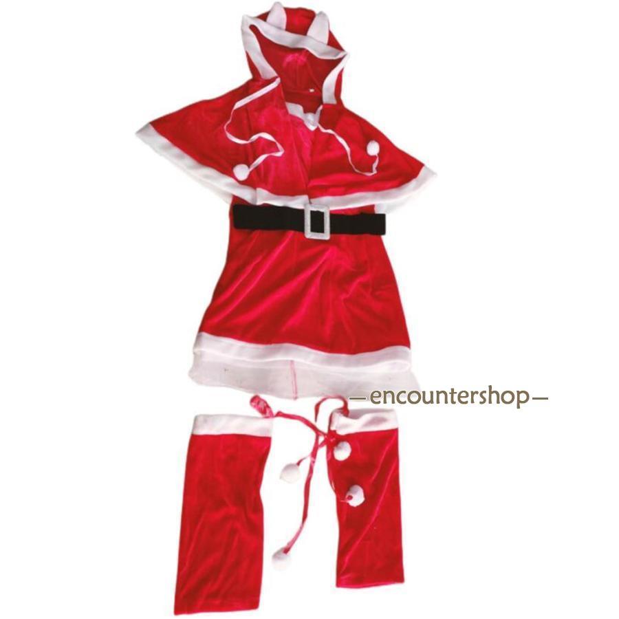 サンタクロース コスプレ クリスマス コスチューム 4点セット 冬用 ワンピース ポンチョ 仮装 衣装 大人用 変身 パーティー イベント ギフト