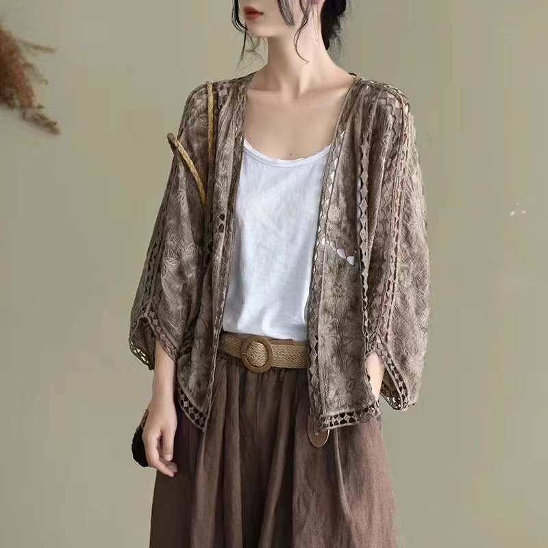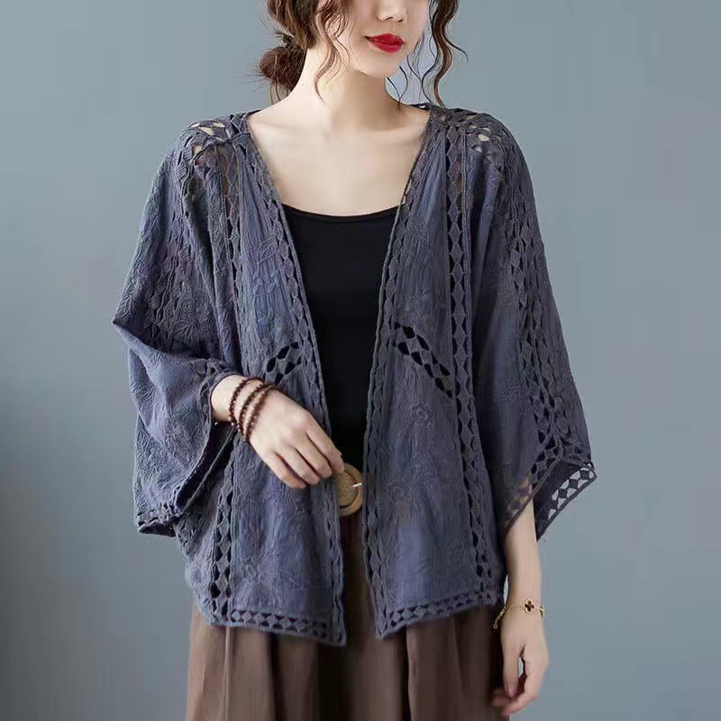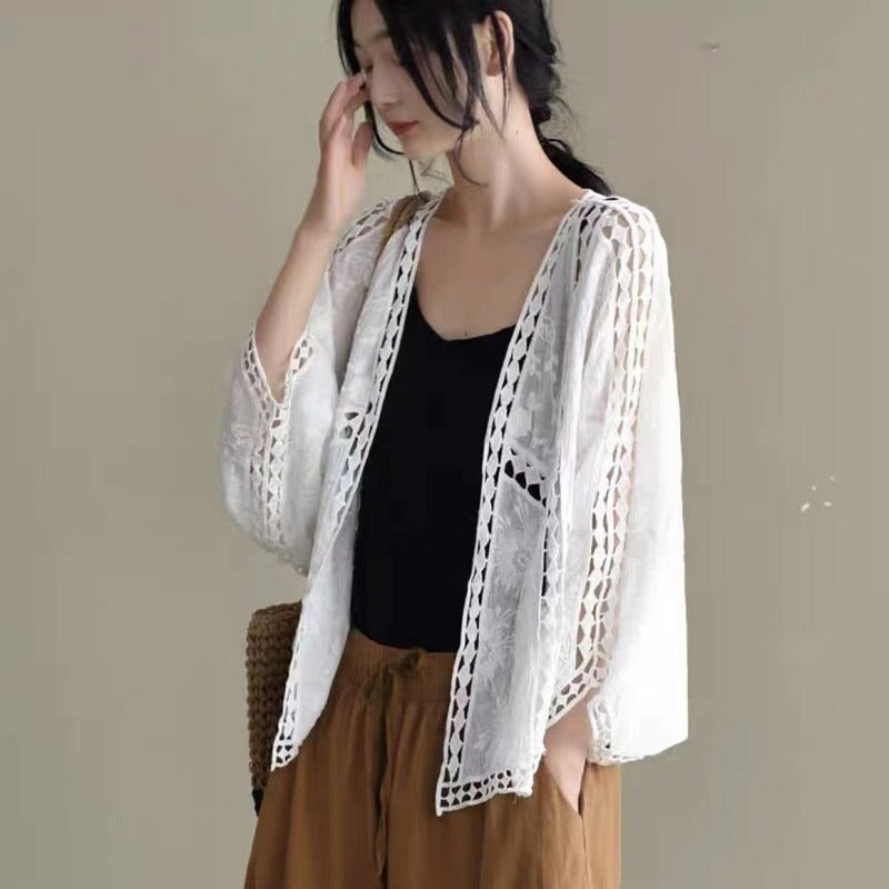 カーディガン レディース レース 夏 UVカット パーカー ドルマン 体型カバー 羽織り 透ける 綿 ドロップショルダー ボレロ サマーカーディガン