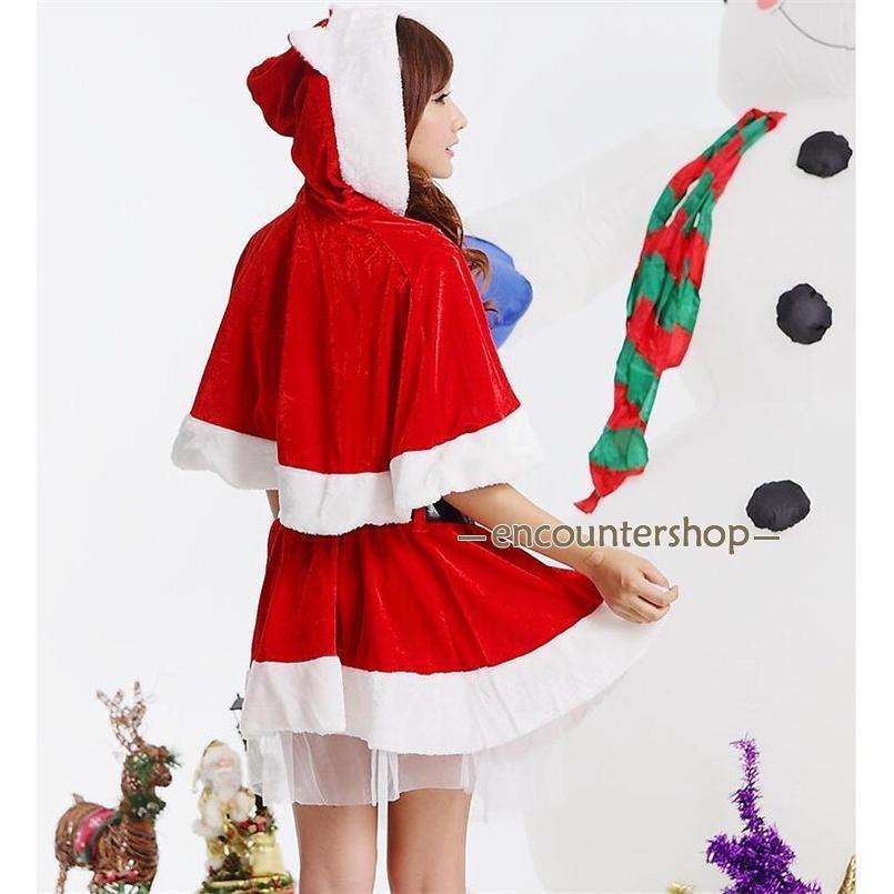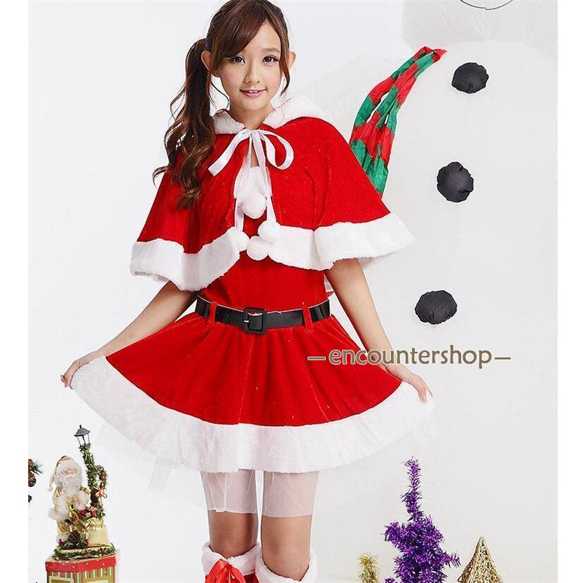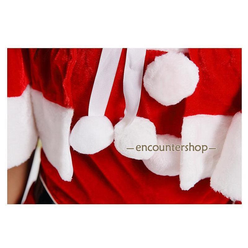 サンタクロース コスプレ クリスマス コスチューム 4点セット 冬用 ワンピース ポンチョ 仮装 衣装 大人用 変身 パーティー イベント ギフト