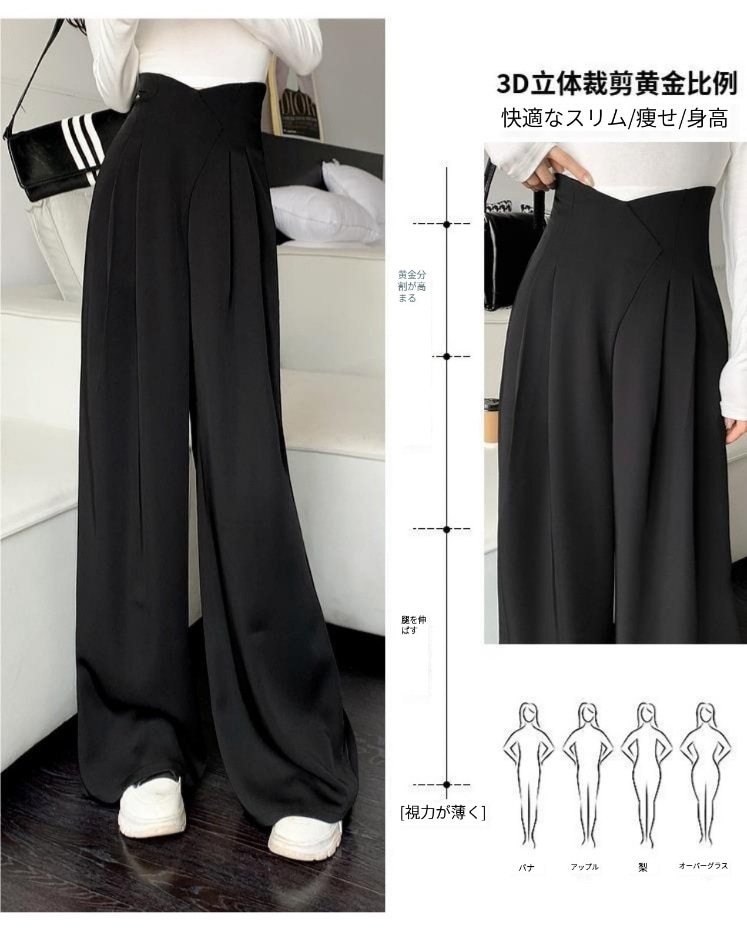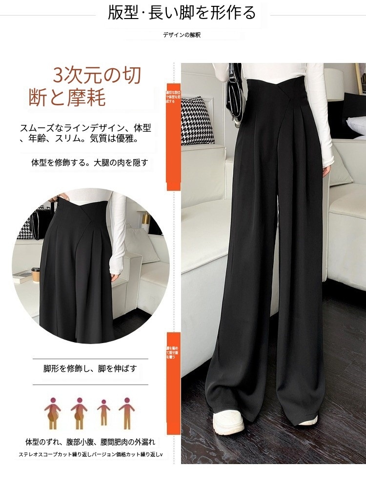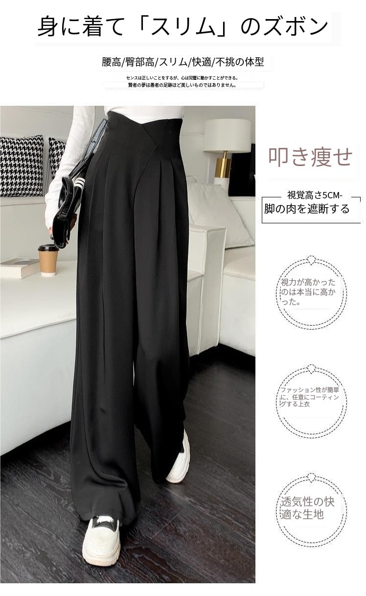 ガウチョパンツ 韓国ファッション美脚 ハイウエスト春 夏新作エレガント 脚長スーツワイドパンツレディース 高級感 ドレープカジュアル 洋風爆丈ロングパンツ母の日ひんやりボトムス