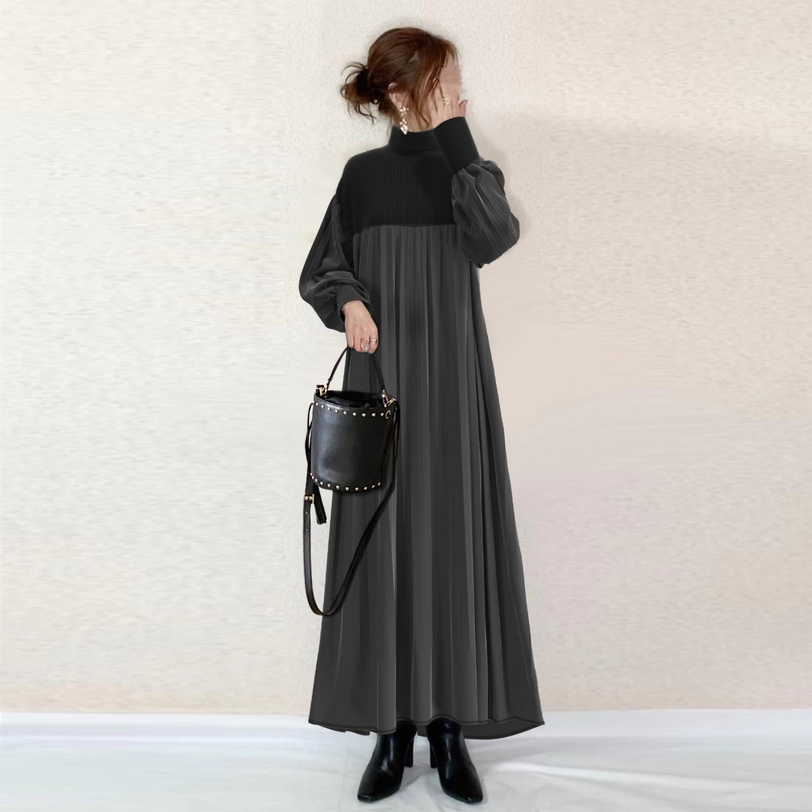 セーターワンピース秋冬プリーツスカートきれい長袖レディースロングスカートスリムおしゃれカジュアルワンピース 長袖ロング マキシ丈ワンピ