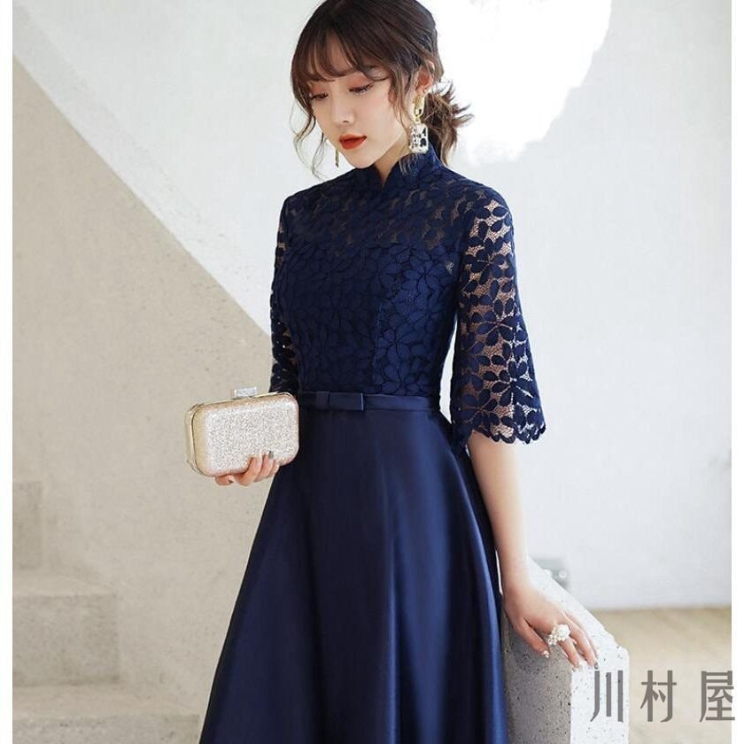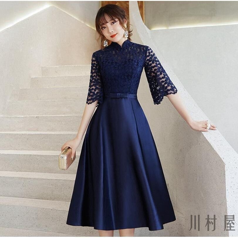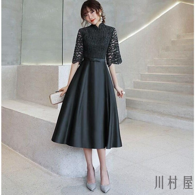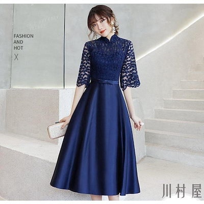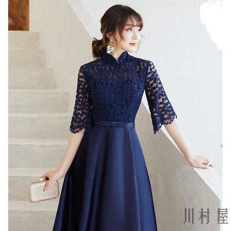 レディースワンピース結婚式ロング丈エレガント二次会パーティーチャイナドレスパーティードレスおしゃれオールインワン半袖40代 ドレス