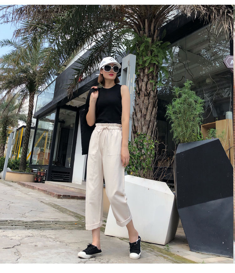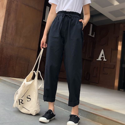 無料 綿 春夏新作 韓国ファッション カジュアル 大学生ハレン bf ドローストリング ワイドパンツ ハイウエスト サロペット 氷感 垂れ感 プリーツ スラックスパンツ ゆったり レディース カジュア
