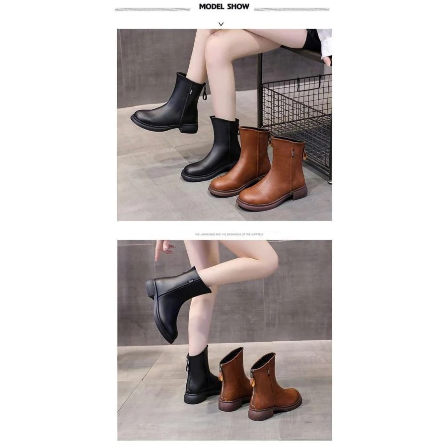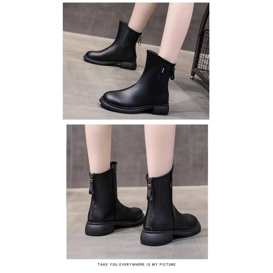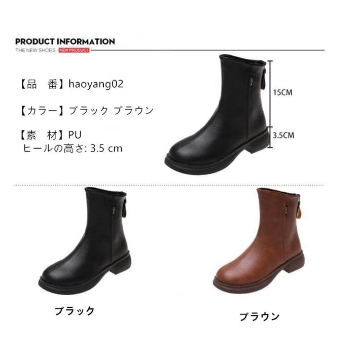 ショートブーツ レディース ローヒール マーチンブーツ ファスナー カジュアル シンプル シューズ 履きやすい 疲れにくい ショート ミドルブーツ