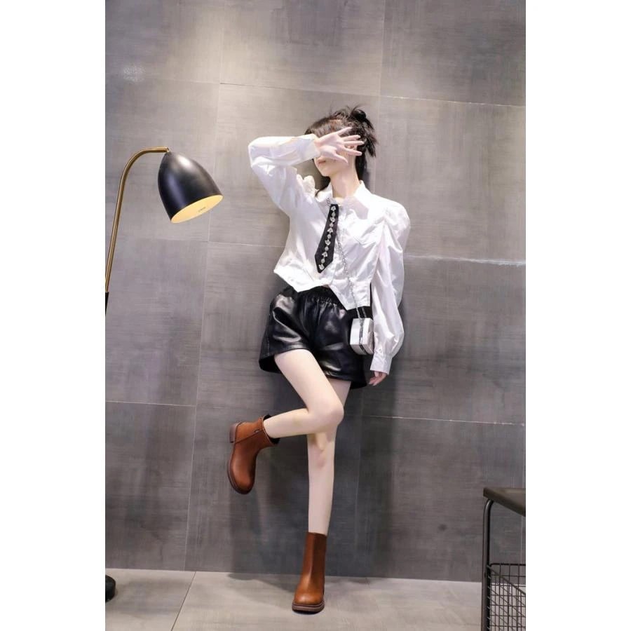 シアースリーブ ドッキングシャツ ボウタイシャツブラウス