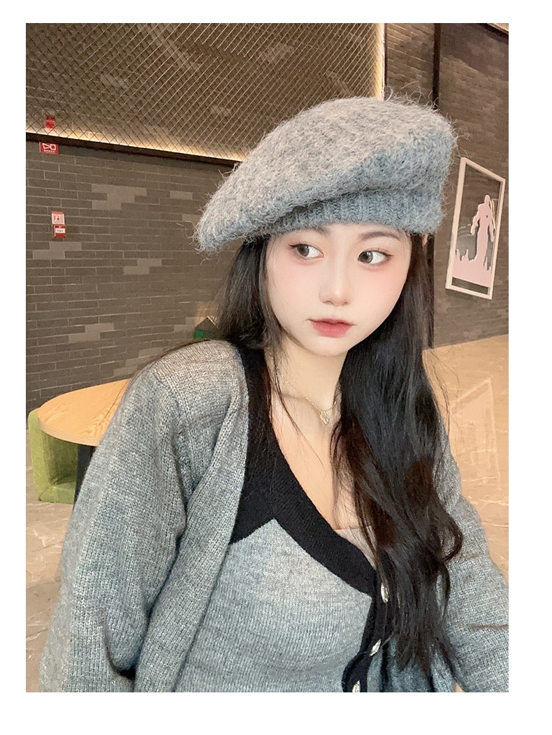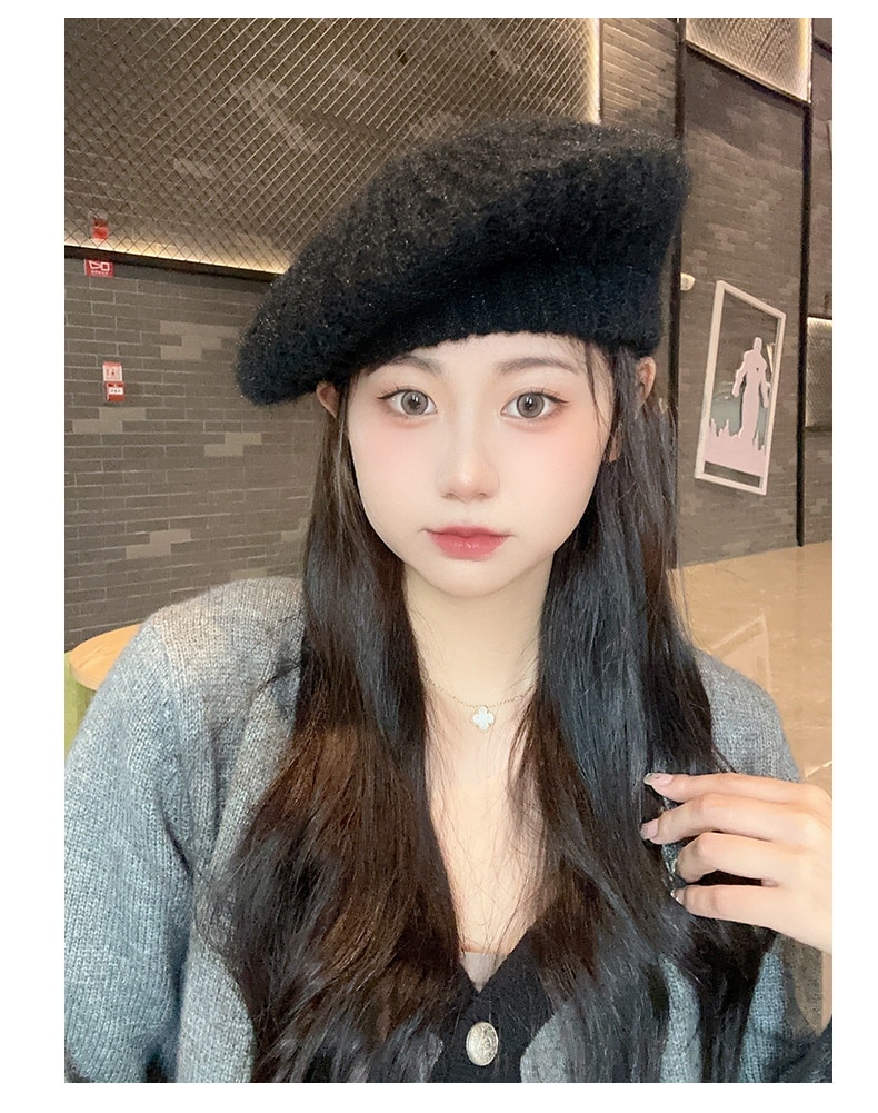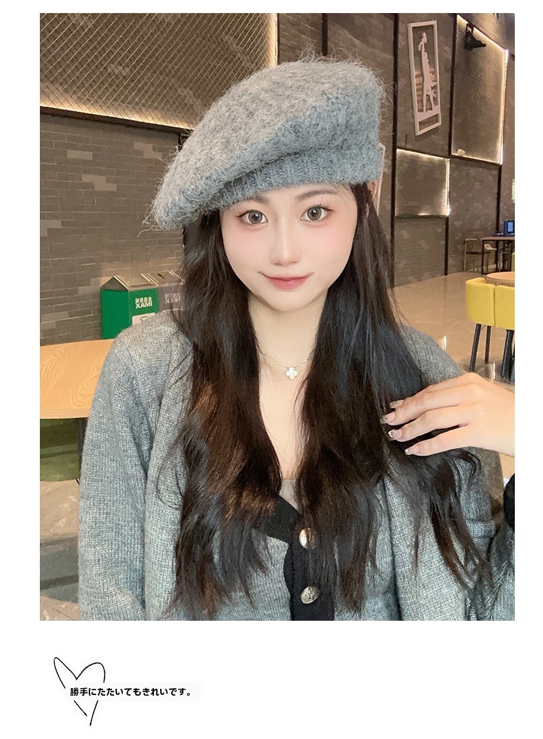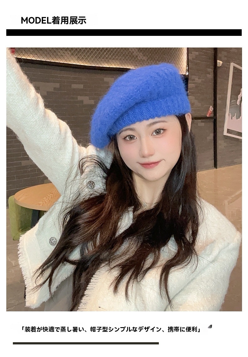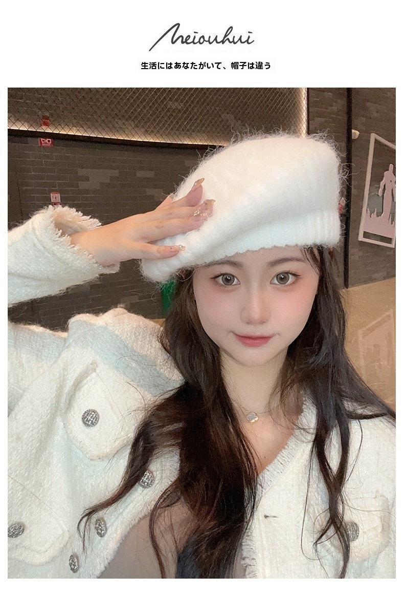 新しいベレー帽白い帽子女性冬暖かいショー顔小さな画家帽子大きな頭周りニット帽百 ニット帽
