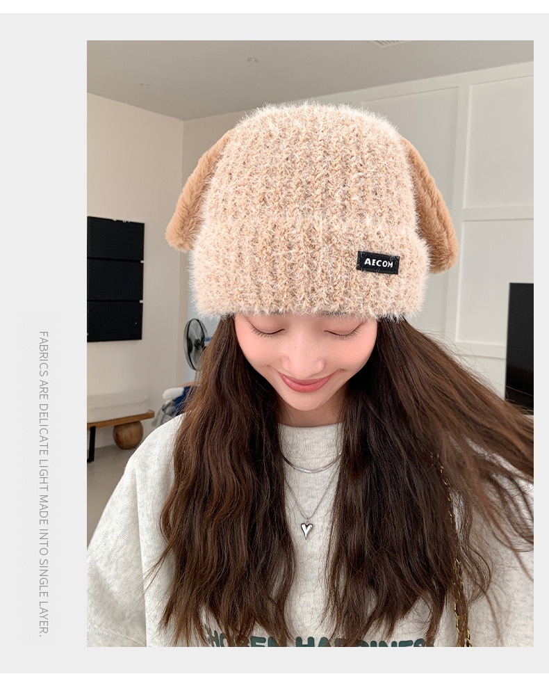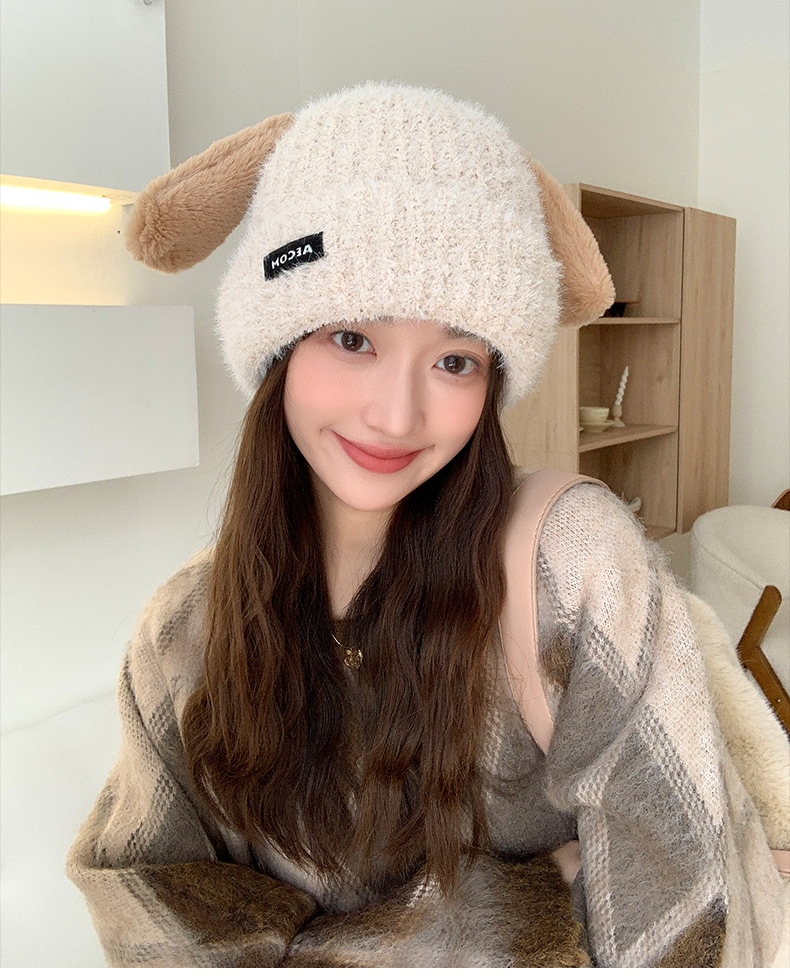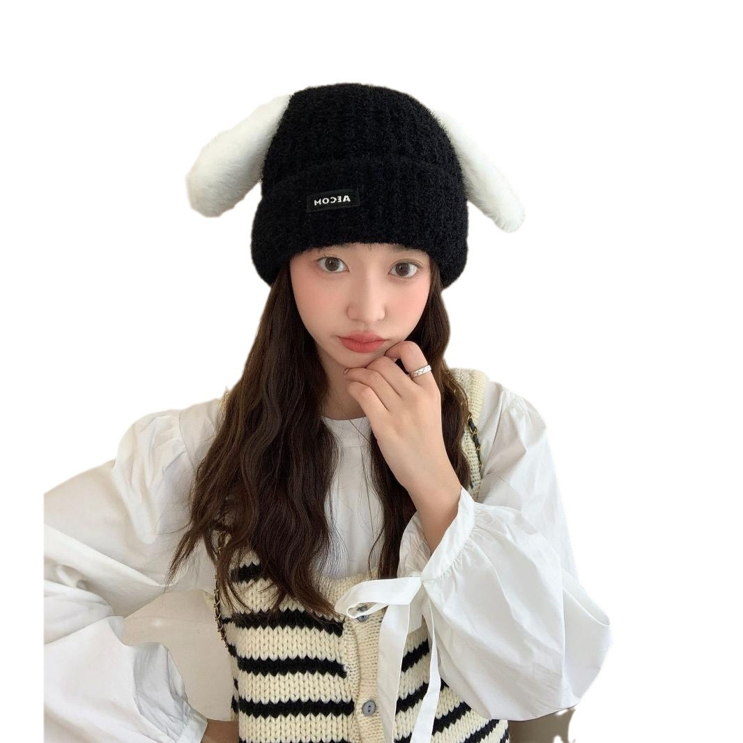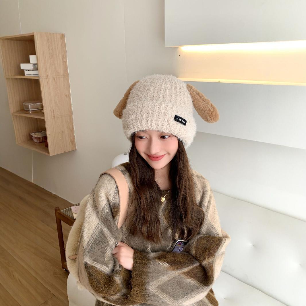 秋と冬の新しい帽子の韓国語版女性かわいい子犬の耳ニットウールキャップ冬暖かい学生の耳保護寒い帽子 ニット帽
